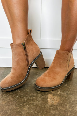 Suede Casual Low Heel Ankle Bootie in Black