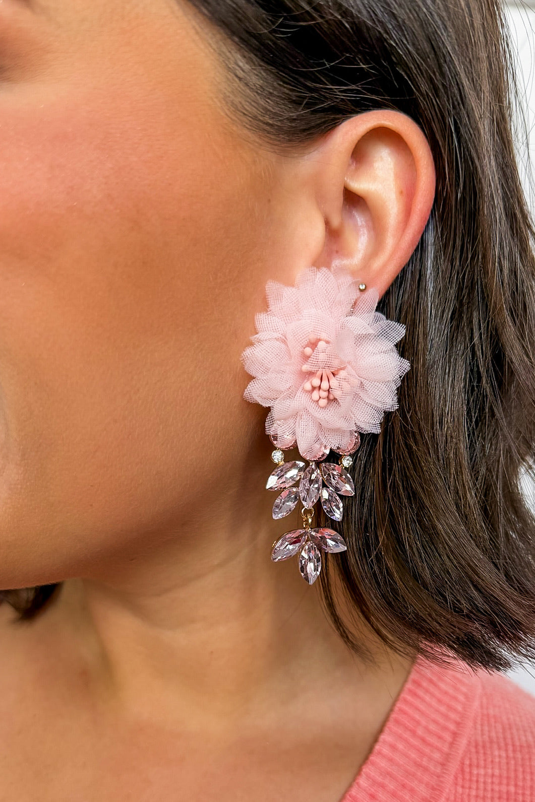 Soft, feminine, and absolutely enchanting — these blush floral statement earrings bring whimsical beauty to any look. Featuring delicate fabric petals, beaded centers, and shimmering iridescent crystal drops, they catch the light with every move. Perfect for weddings, date nights, spring outfits, or any moment you want to feel pretty & romantic.