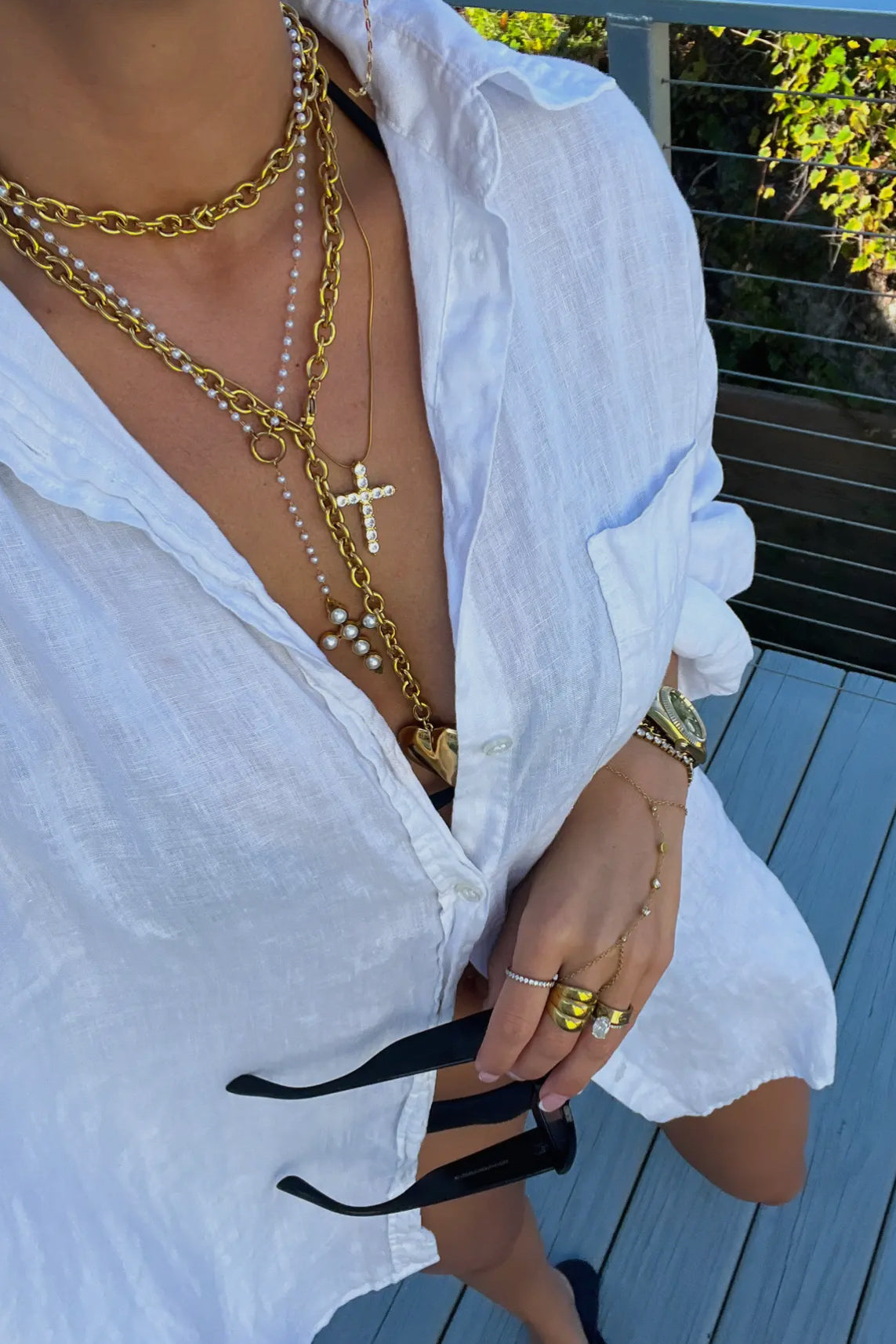 Introducing Chan Sutt Pearls Necklace, a symbol of faith and elegance. With its water resistant design, this necklace is perfect for everyday wear. Enjoy a lifetime of beauty and quality with our exclusive lifetime warranty. Make a statement with Chan Sutt Pearls Jewelry.