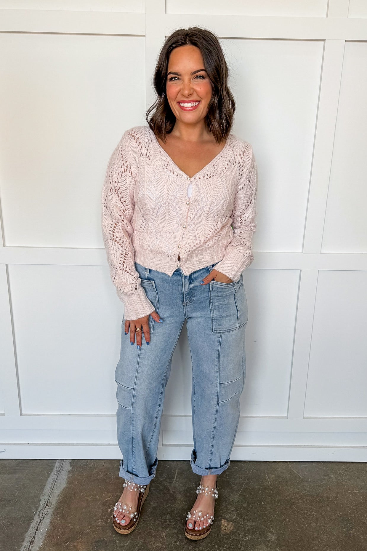 Effortless elegance meets everyday comfort in this light pink sweater cardigan. Crafted from soft, breathable fabric, it layers beautifully over your favorite tees or dresses for a polished, put-together look. The classic button-front design and relaxed fit make it perfect for casual outings, office days, or cozy evenings at home. A versatile wardrobe essential that transitions seamlessly from season to season.