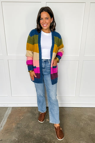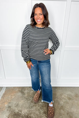 Changed for the Better - Green Long Sleeved Collared Striped Top with Pink Contrast