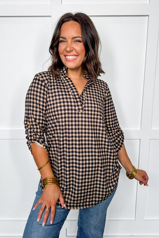 Hot Pink Deal - Taupe Dotted Mock Neck Top