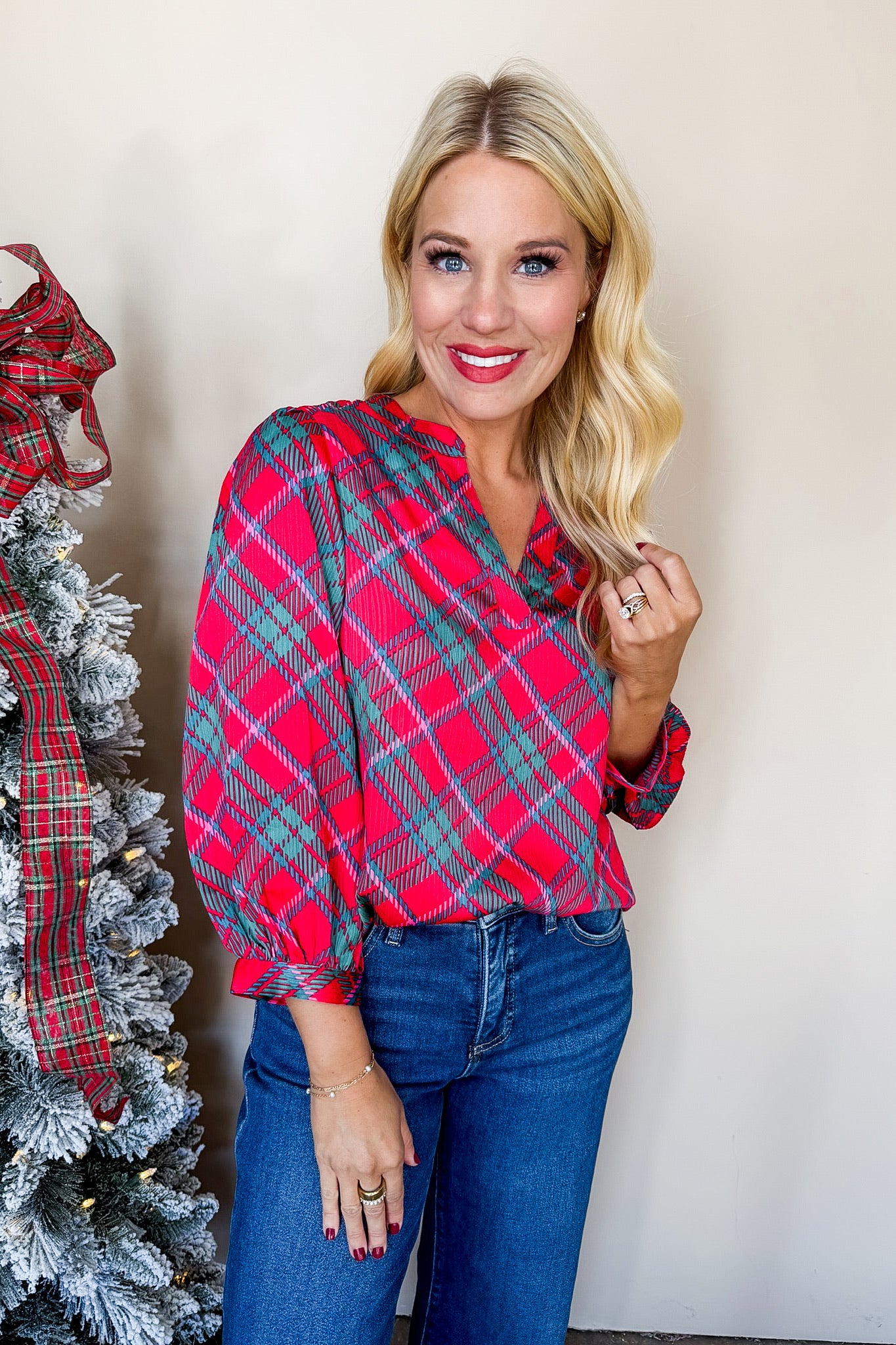 This playful long-sleeve top features a colorful plaid pattern and a flattering waist hit. Its lightweight, flowy fabric gives you an effortlessly breezy vibe—perfect for adding fun to your everyday style.