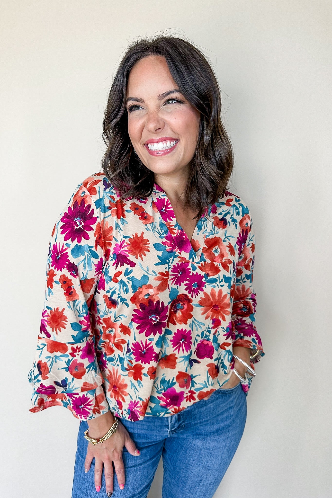Dear Scarlett Liz Bell Printed Top in Colorful Print