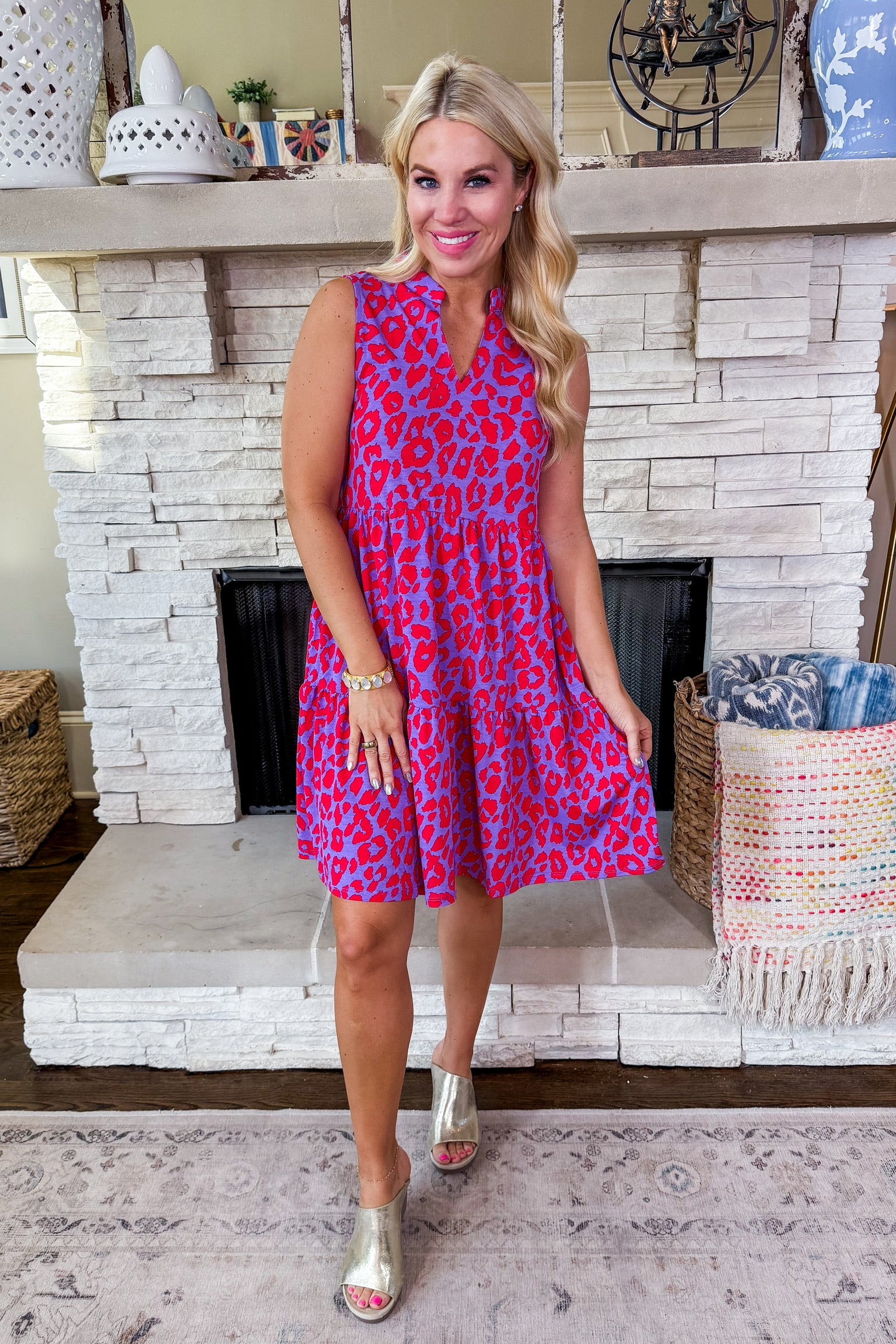 The Lizzy Tiered Pocket Dress in Violet/Red Cheetah Print