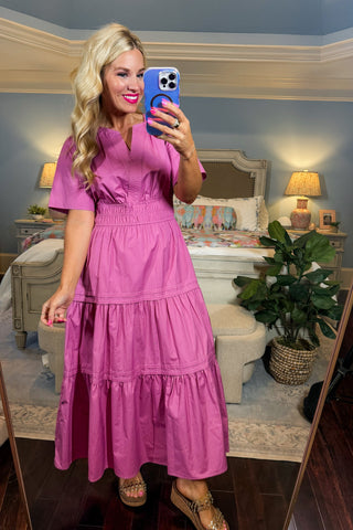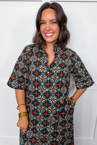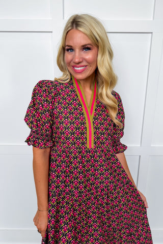 Preppy Girl Dress With Cardigan Draped Across The Shoulders in Navy Stripes