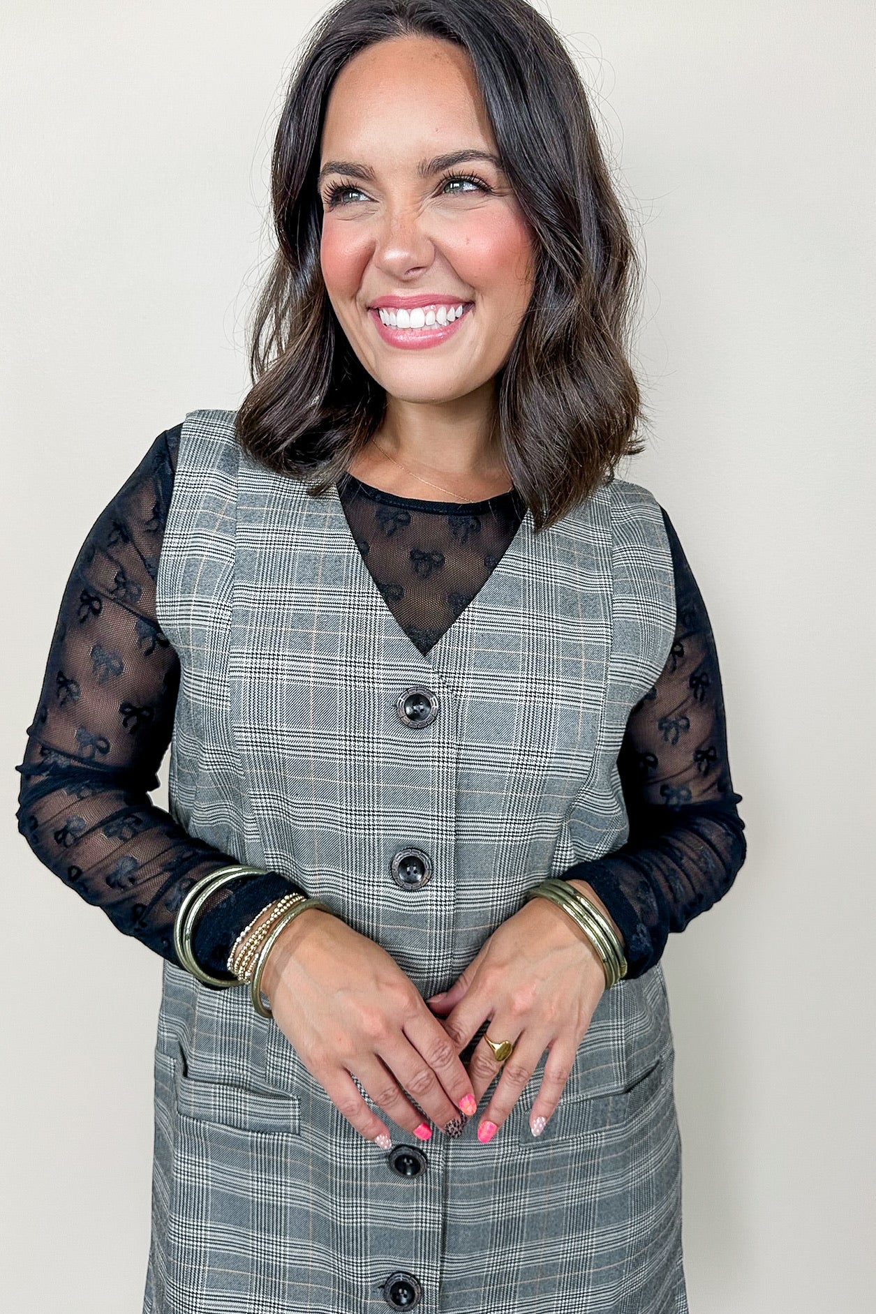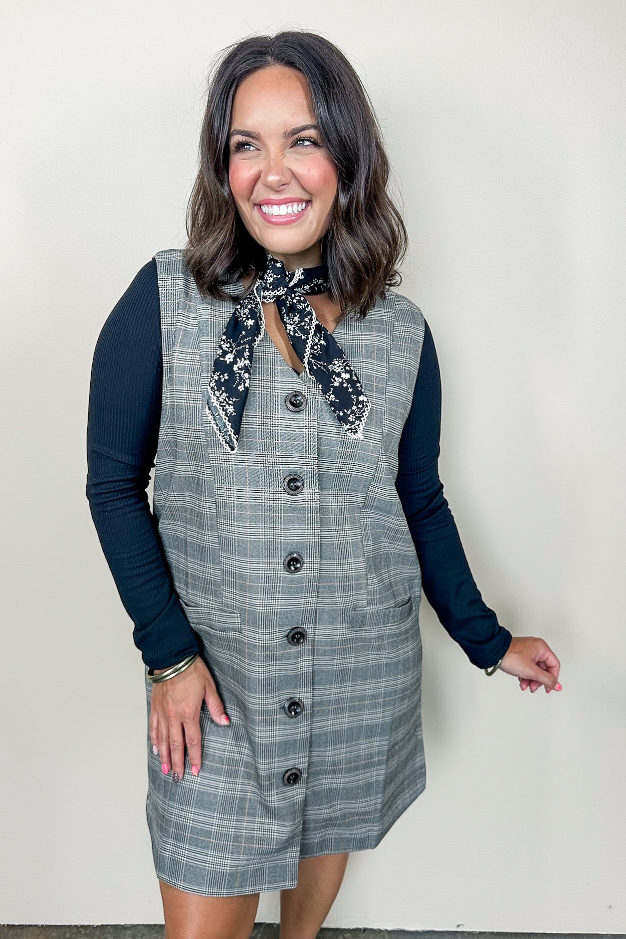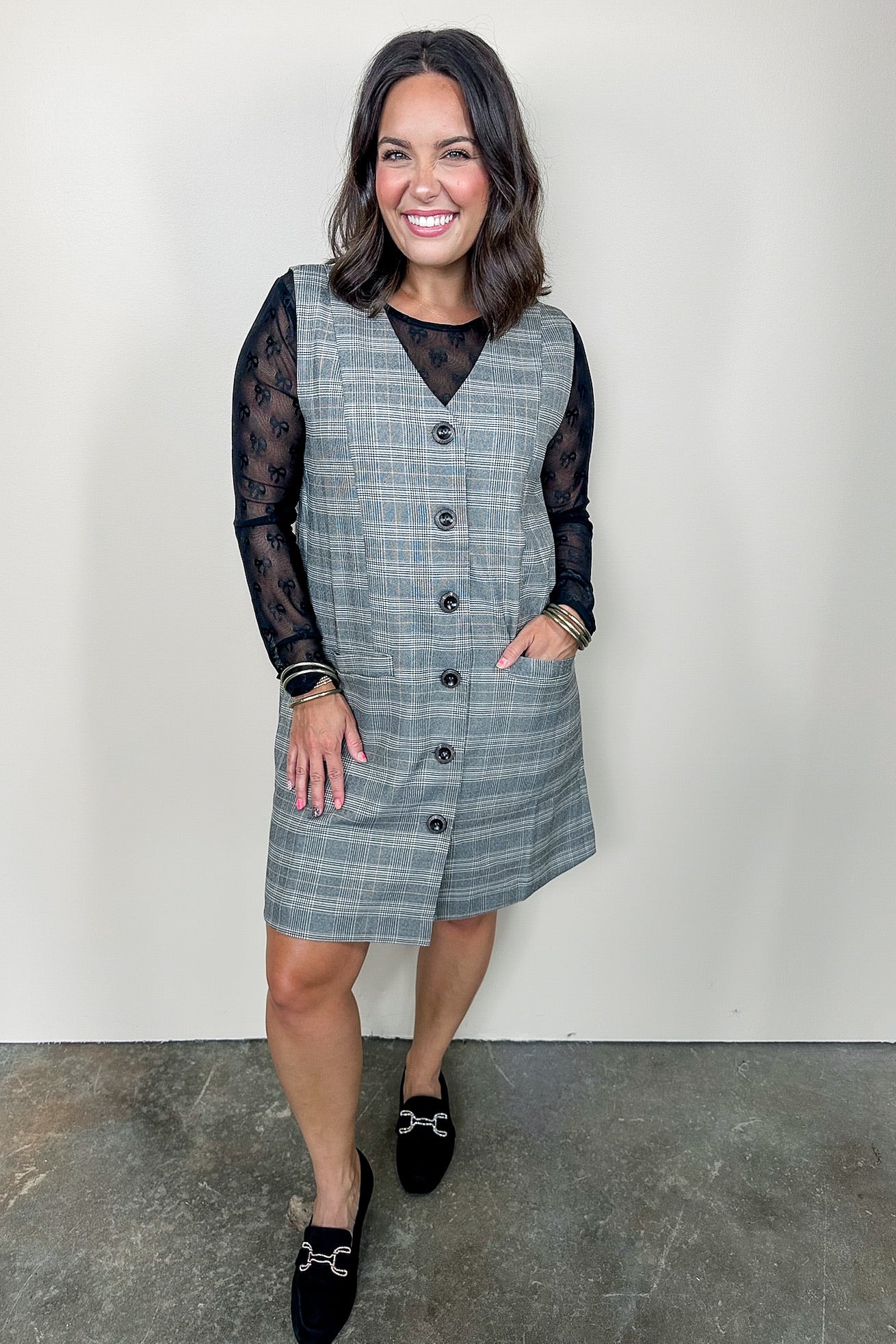 The Checkmate Charm Dress brings effortless style with its black gingham plaid pattern and relaxed, boxy fit. Lightweight and easy to wear, this versatile piece works perfectly on its own or layered for a casual-chic look. Ideal for picnics, weekend strolls, or everyday wear with a hint of classic charm.