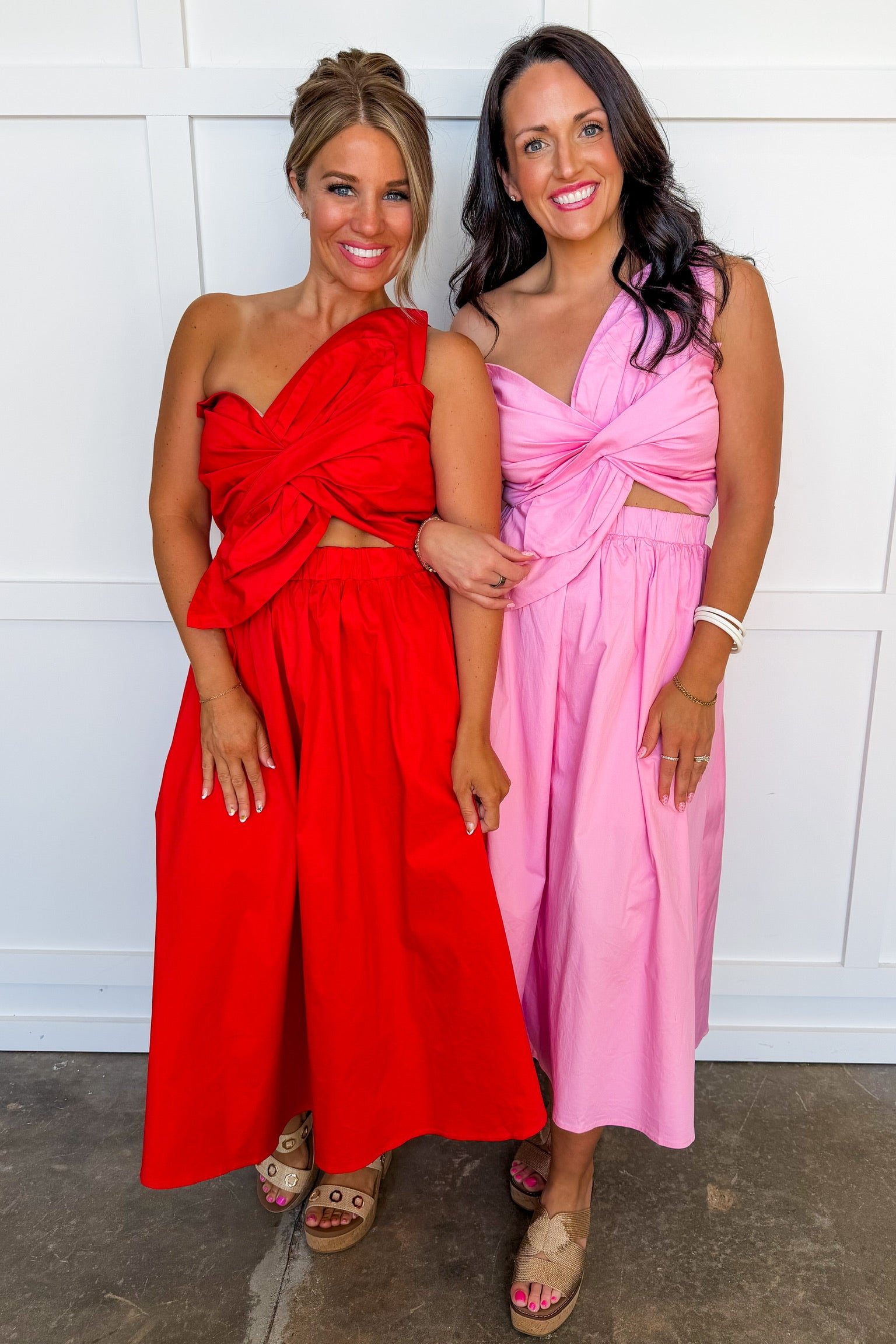 Make a statement the moment you walk in! The Center Stage Bow Midi Dress is designed to turn heads with its bold silhouette and standout bow detail. Featuring a flattering one-shoulder neckline and a voluminous skirt, this dress brings the perfect mix of feminine charm and elevated drama. Whether you're heading to a special event, dinner, or celebrating in style, this piece ensures all eyes are on you.