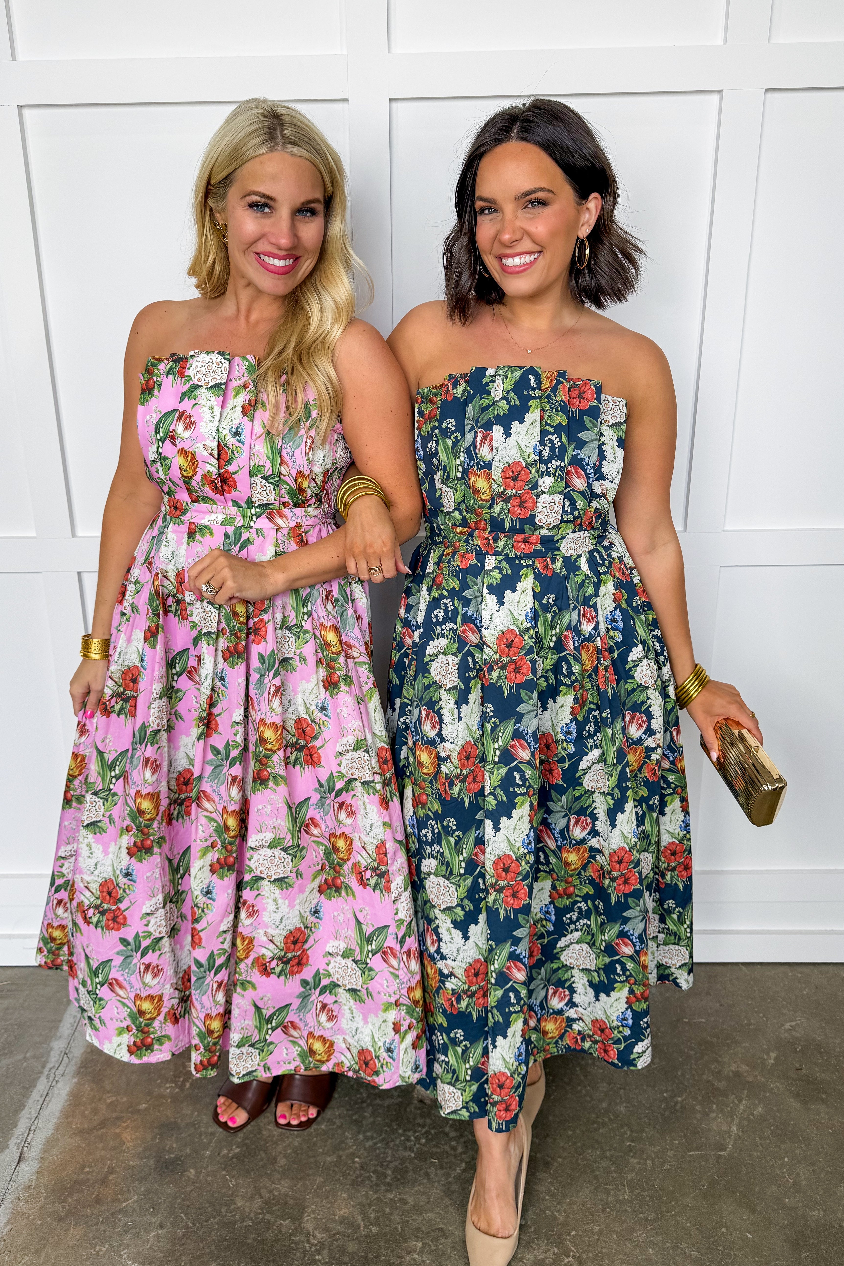 Meet The Garden Soirée Midi Dress — a true standout that blends timeless romance with effortless wearability. Designed with a flattering midi length and a beautifully tailored silhouette, this dress features a stunning floral print that feels both classic and fresh. The structured bodice creates a polished look, while the flowy skirt adds soft movement with every step. Whether you’re attending a special event, hosting a gathering, or simply want to feel extra put together, this dress delivers elegance without feeling overdone. It’s no surprise this one continues to be a customer favorite! T