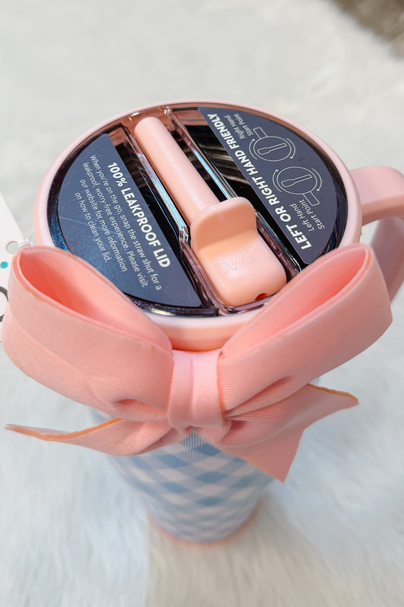 Stay hydrated in style with the Gingham Dreams Swig 40oz Tumbler. Featuring a chic gingham print, this oversized insulated tumbler is designed for all-day sipping at home, on the go, or wherever your day takes you. A cup-holder-friendly base, comfort-grip handle, and plastic straw with a silicone flexi-tip come together to create your new favorite Swig. With long-lasting temperature control and durable, spill-resistant design, this tumbler blends beauty and function effortlessly.