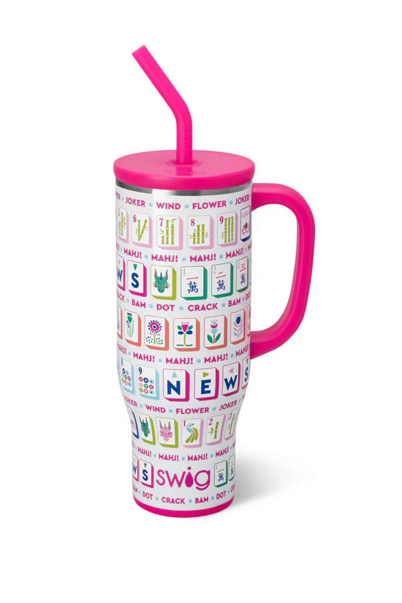 Hydrate in style with the Mahjong Multicolor Swig 30oz Tumbler—the perfect blend of function and fun. Featuring a vibrant Mahjong-inspired print, this tumbler brings personality to your daily routine while keeping your favorite drinks at the perfect temperature. Designed for life on the go, it features a cup holder–friendly shape, a comfort-grip handle, and a flexible silicone straw lid for easy sipping. Whether you’re heading to game night, running errands, or lounging at home, this tumbler makes staying hydrated effortless and stylish.