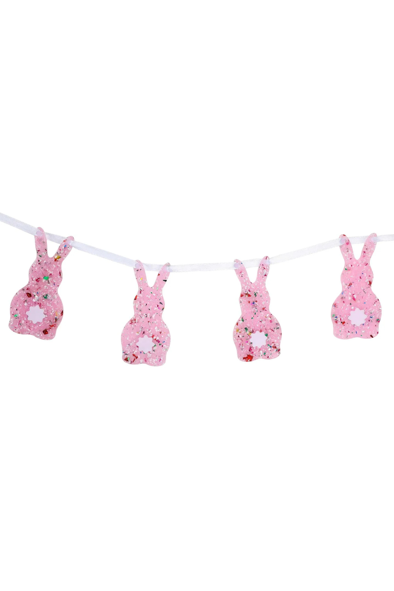 Bring instant hop-py vibes to your celebration with this playful Confetti Hop Bunny Garland. Featuring sparkling acrylic bunnies filled with multicolor confetti and glitter, this garland adds a sweet pop of pink and shimmer to Easter brunches, spring parties, baby showers, and beyond. Lightweight and easy to hang, it’s the perfect finishing touch for walls, mantels, dessert tables, or party backdrops.