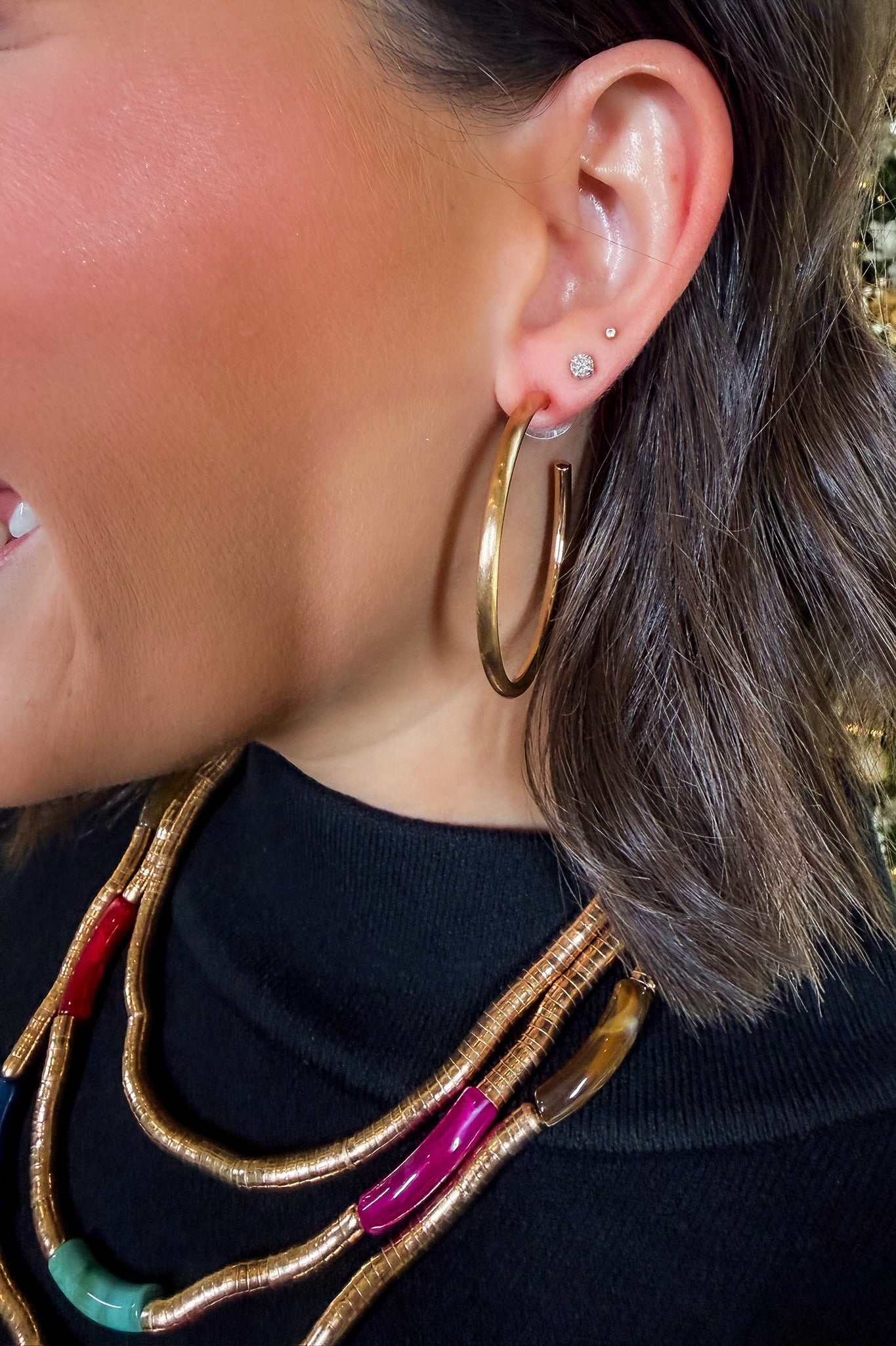 These are classic gold hoops with a modern twist — sleek, versatile, and the kind of piece you’ll wear on repeat. They’re the perfect “everyday luxury” earring that adds just the right shine to any outfit ✨