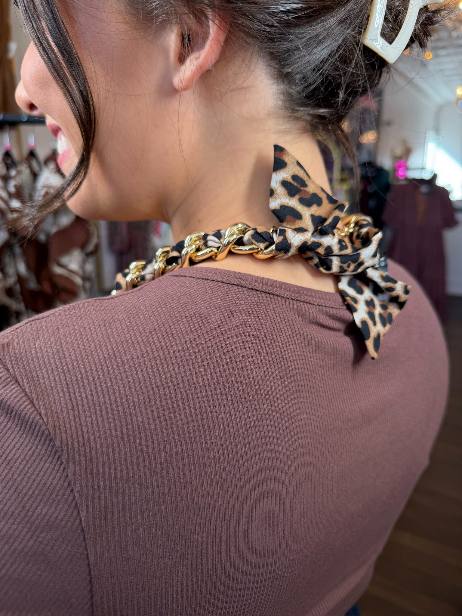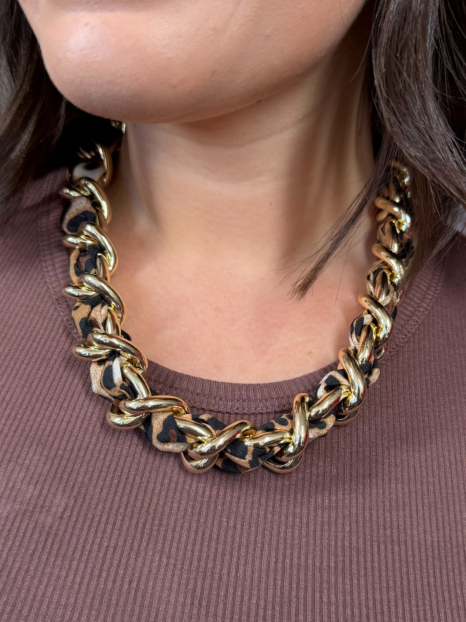 Turn heads with The Savannah Chain Necklace — a bold gold statement chain woven with luxe leopard-print fabric. Effortlessly blending edgy and elegant, this piece adds instant personality to any outfit. Perfect for dressing up basics or topping off a night-out look.