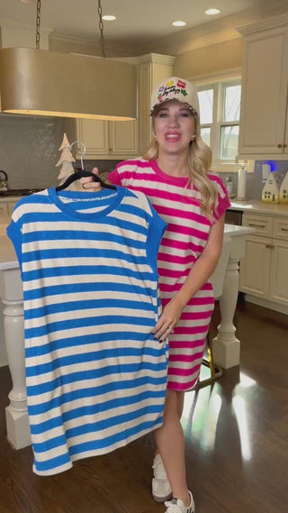 Hot Pink Deal - Classic Striped Terrycloth Dress in Blue