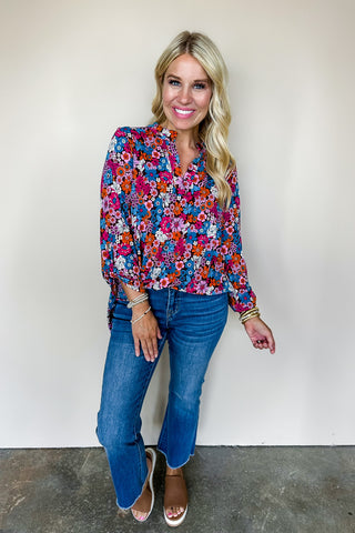 Dear Scarlett Lizzy Printed Top in Red & Blue Floral