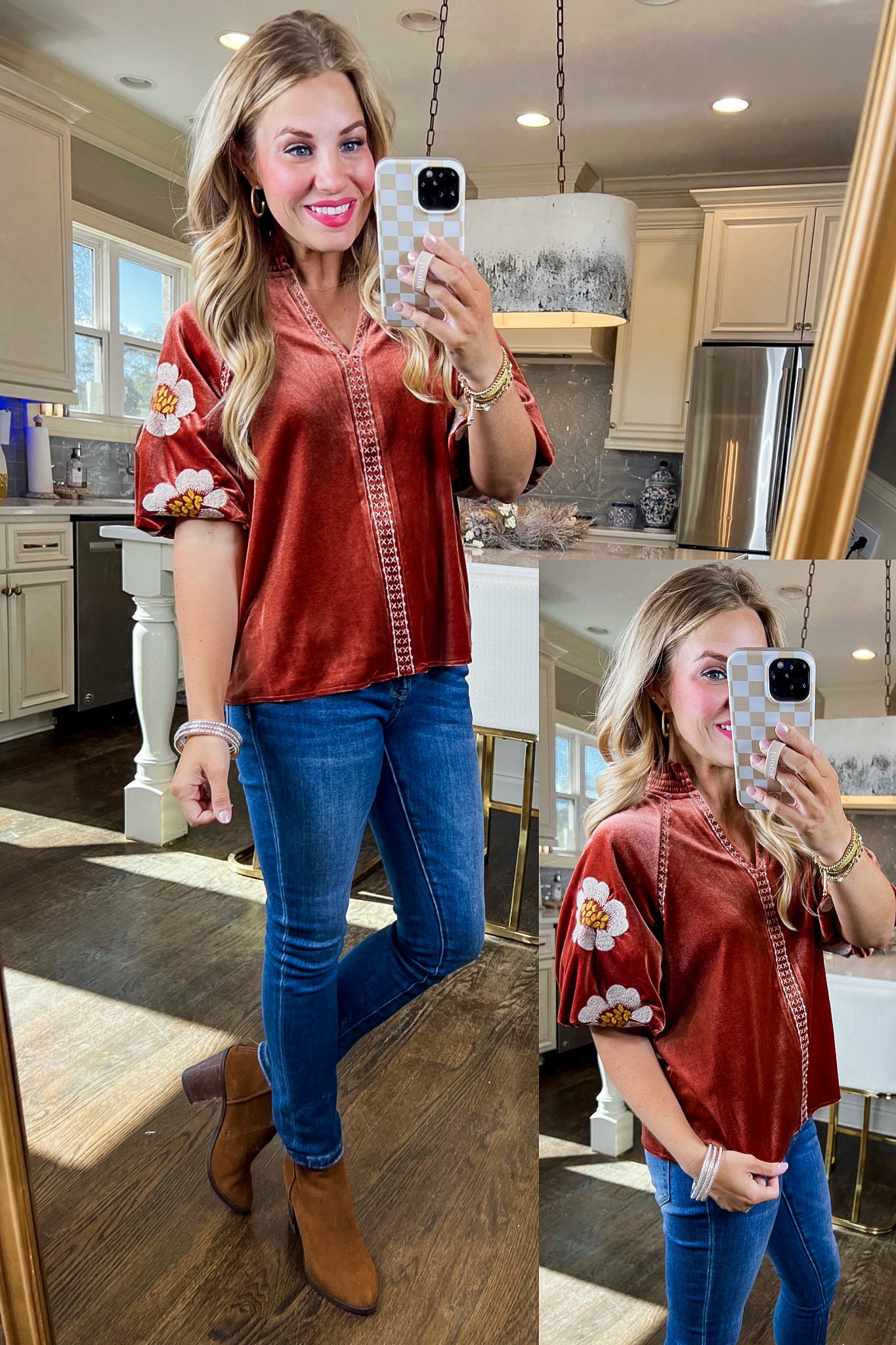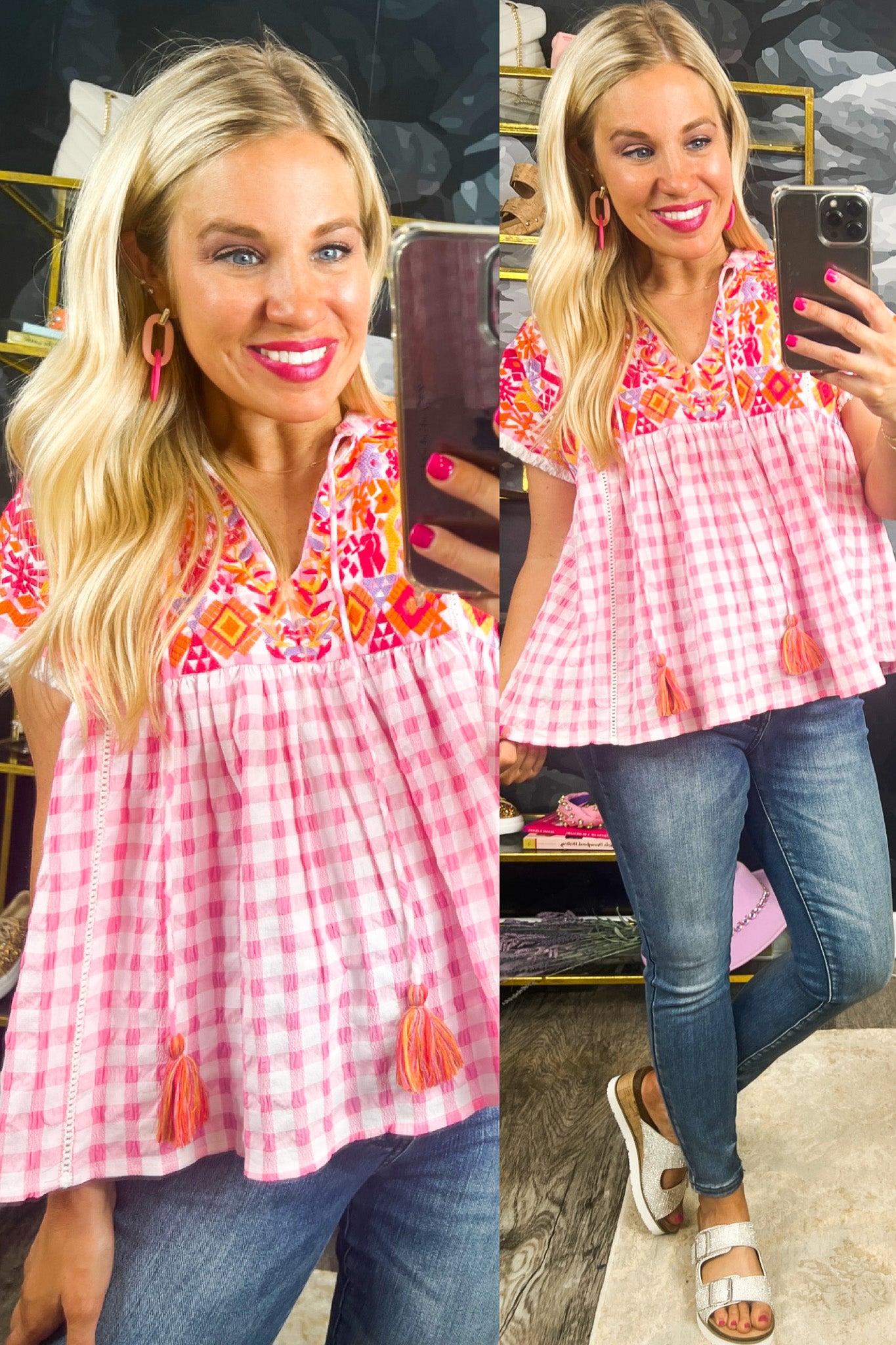 Full Sequin Plaid Puff Sleeve Top by THML in Cream/Gold