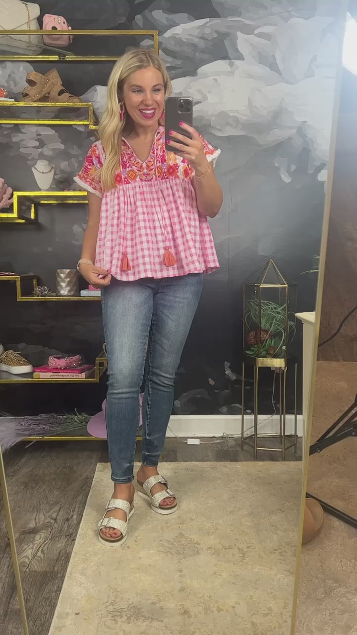 The Cassidy White Ric Rac Trim Ruffle Sleeve Top by Mary Square