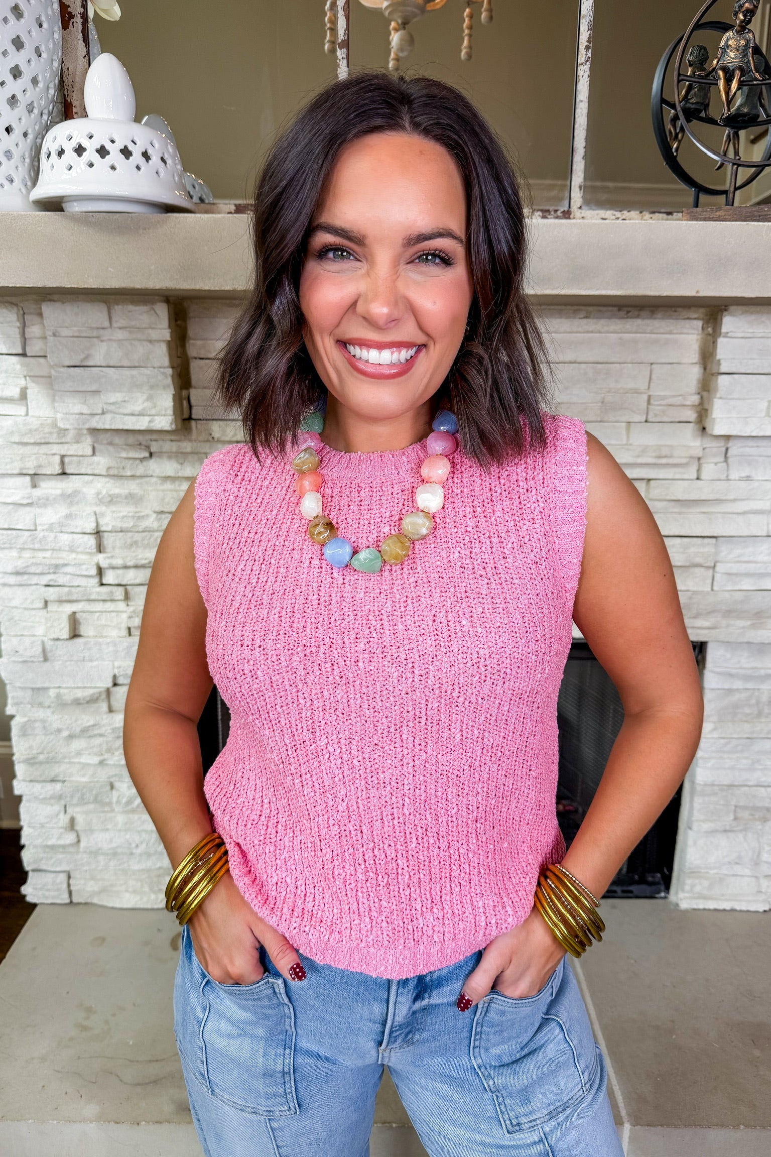 Fair & Square Knit Tank in Pink
