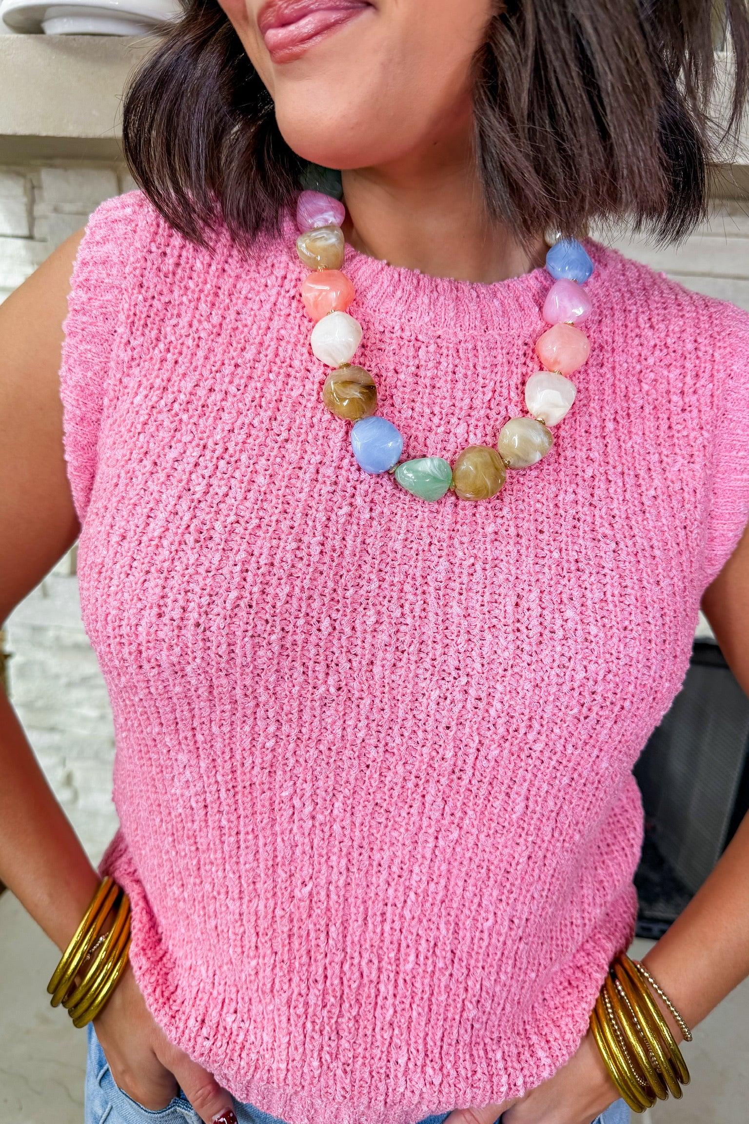Easy, flattering, and endlessly wearable, the Fair & Square Knit Tank is a closet staple with a playful twist. Designed in a soft knit with a cropped, sleeveless silhouette, this tank offers the perfect balance of comfort and polish. The smooth, structured feel gives it an elevated look, while the easy fit makes it perfect for layering or wearing on its own. It's a versatile piece you’ll reach for all season long!