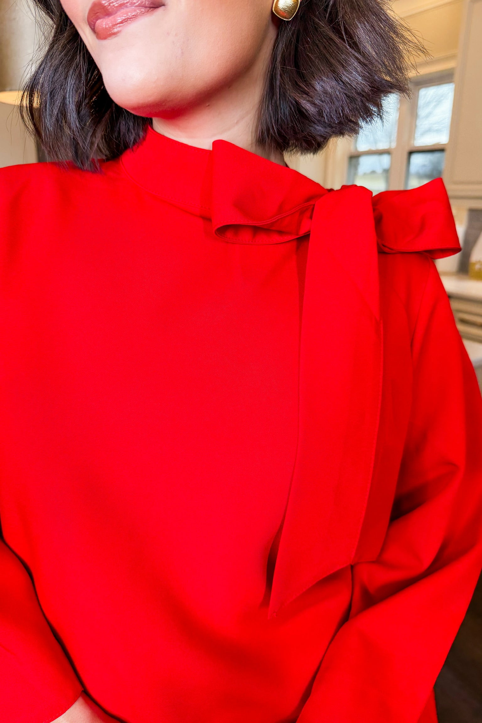 Make an entrance this season with our Be My Valentine Red Bow Shift Dress — a timeless, ultra-feminine statement piece. Featuring a beautifully structured bow neckline, elegant long sleeves, and a clean shift silhouette, this dress gives effortless sophistication with zero styling stress. Pair with heels and gold jewelry for a truly iconic look.