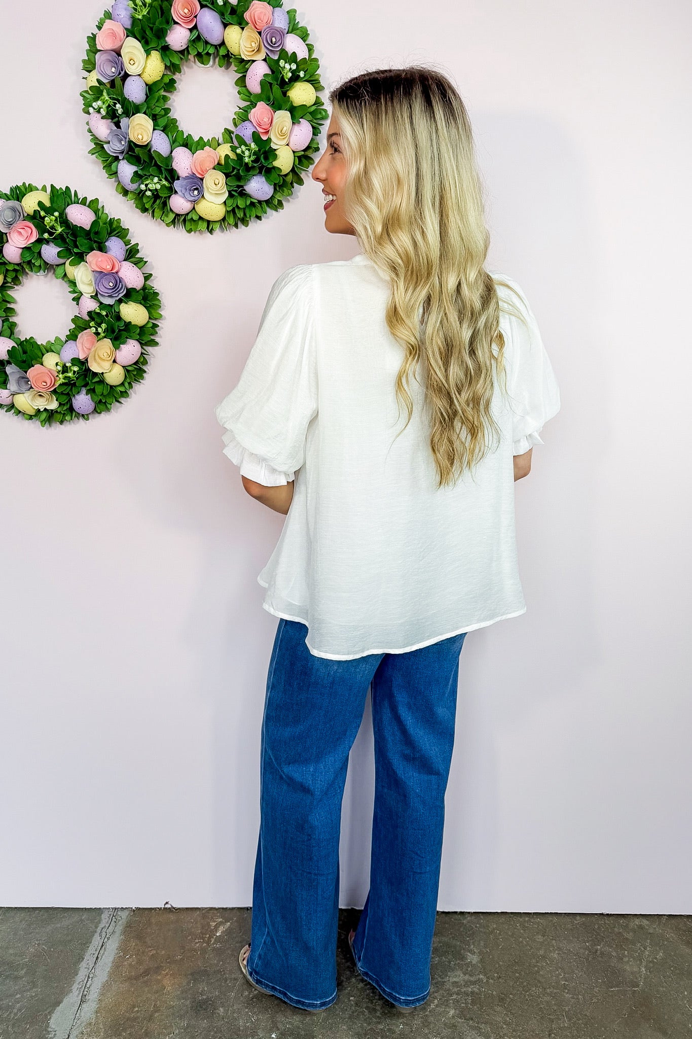 Soft, feminine, and effortlessly polished — the Pretty & Proper Off White Top is the definition of classic charm with a playful twist. Designed in a beautiful off-white hue, this top features delicate ric rac trim detailing that adds subtle texture and a touch of vintage-inspired sweetness. The statement puff sleeves create soft volume for a flattering, romantic silhouette, while the ruffle accents give it that extra boutique-special feel. Lightweight and breathable, it’s perfect for pairing with tailored pants, denim, or dressy skirts.