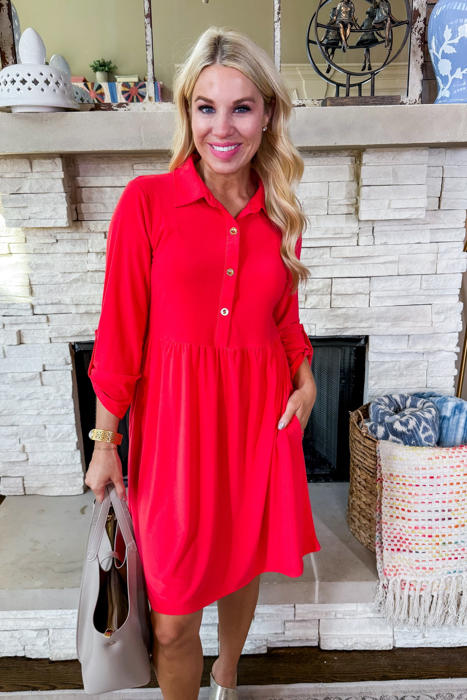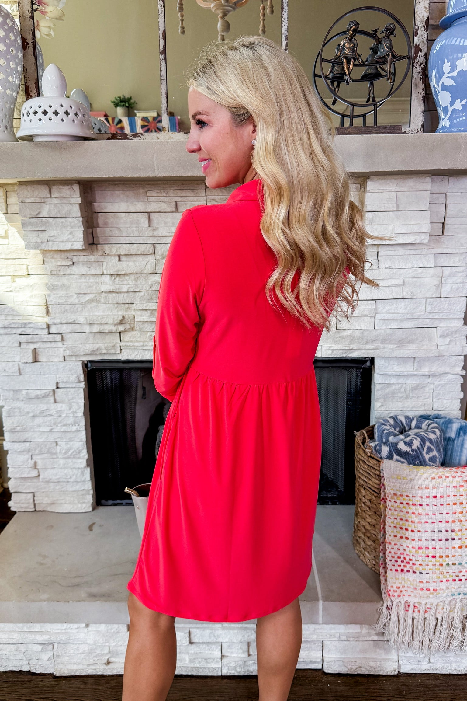 Inspire Me Button Front Dress in Red