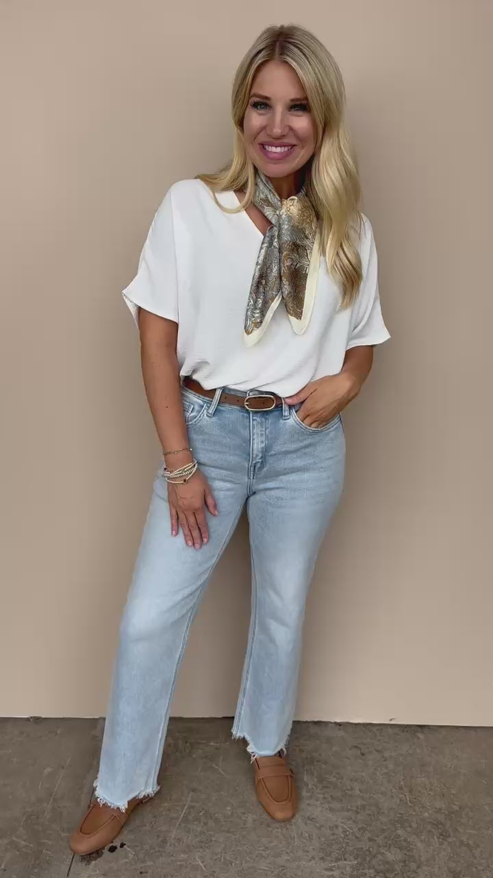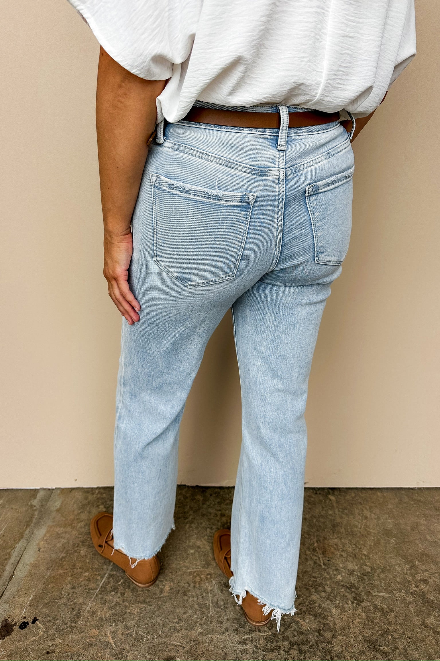 Upgrade your denim game with the Aileeah High Rise Light Wash Slim Wide Leg Vervet Jean. The distressed hem adds a touch of edge, while the versatile style pairs effortlessly with all your favorite shoes and tops! Upgrade your wardrobe and make a statement with these stylish jeans!