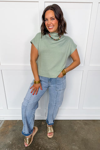 The Alexis Pants - Eyelet High Waisted Scalloped Hem Pants in Oatmilk