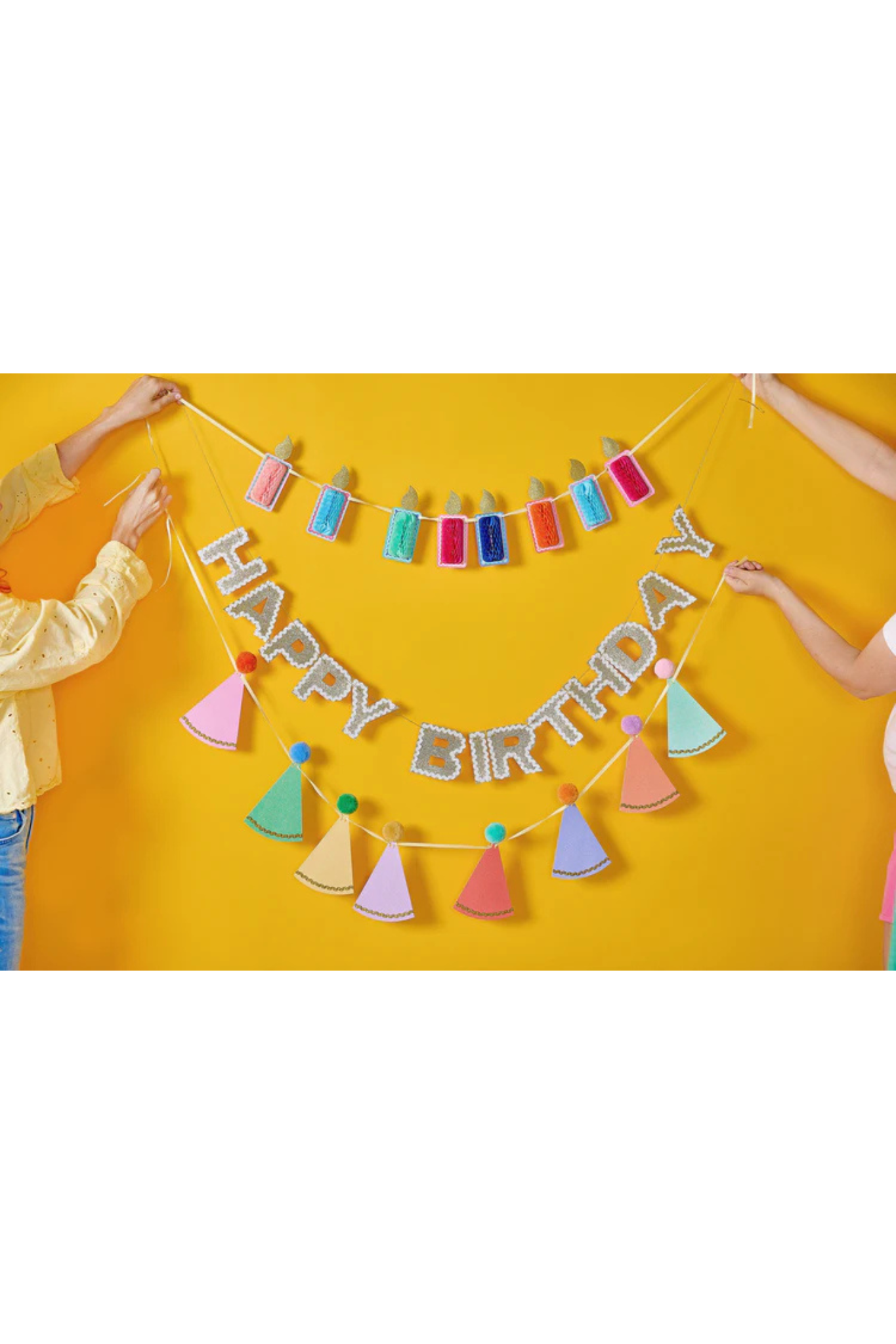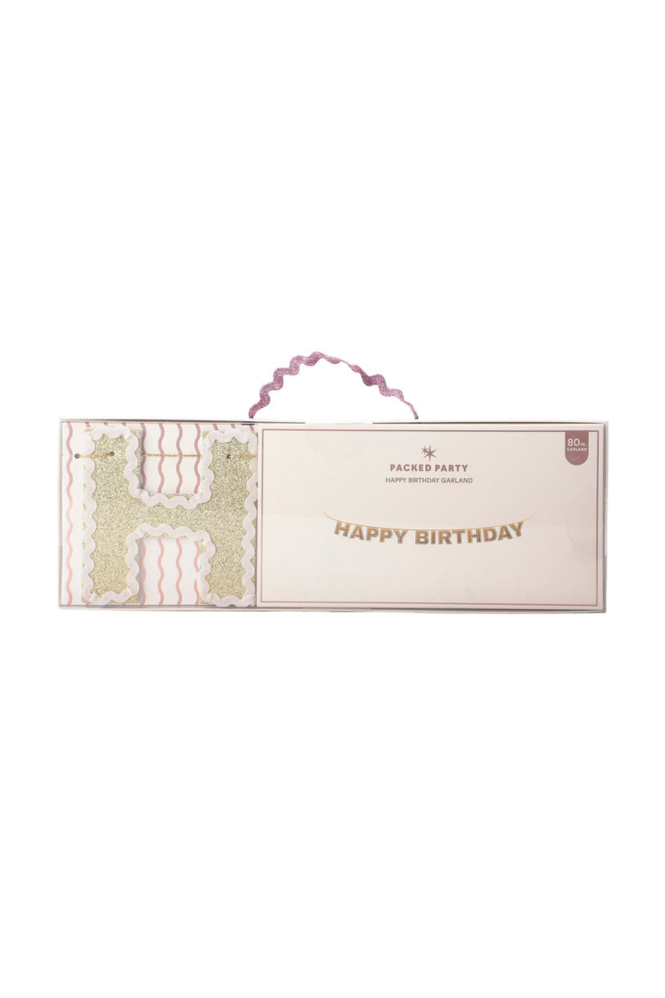 Celebrate in style with this gold happy birthday party garland banner! Featuring shimmering gold letters outlined with a charming ric-rac trim, this reusable banner adds a timeless yet playful touch to any birthday setup. Measuring 80 inches long, it’s perfect for hanging across mantels, walls, dessert tables, or party backdrops. A classic piece you’ll reach for year after year to make birthdays feel extra special!
