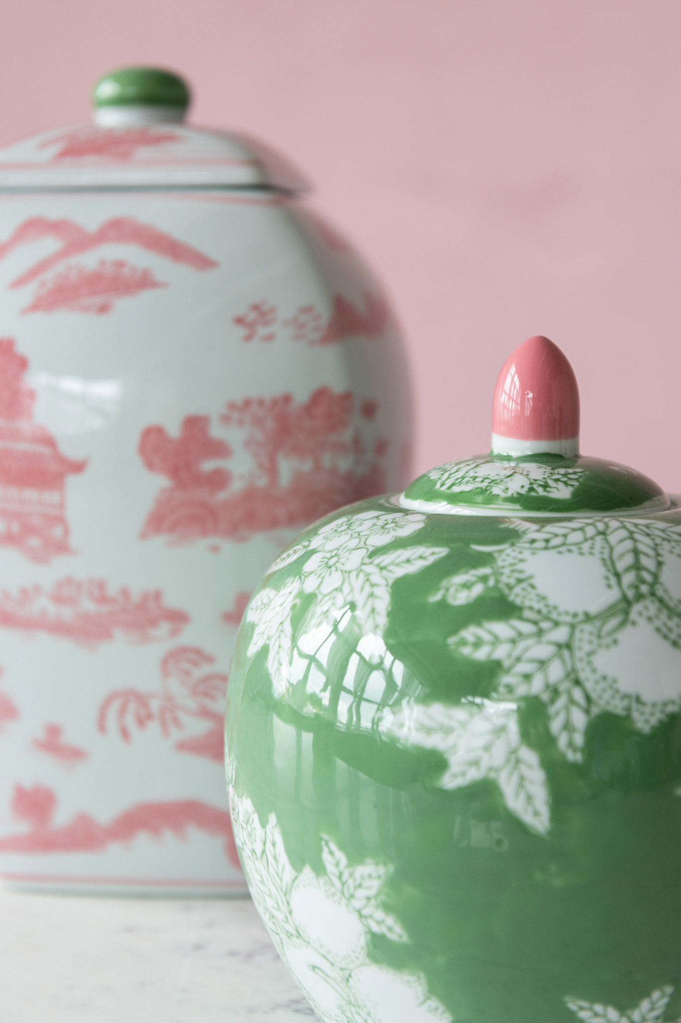 Classic charm meets fresh color in this stunning stoneware ginger jar. Featuring a soft green base accented with pink detailing, this timeless silhouette brings a collected, grandmillennial feel to any space. Its generous size makes it a standout accent for consoles, shelves, or tabletops—beautiful on its own or styled into a layered vignette.