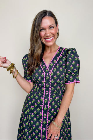 Hot Pink Deal - Lime Light Moment Puff Sleeve Dress