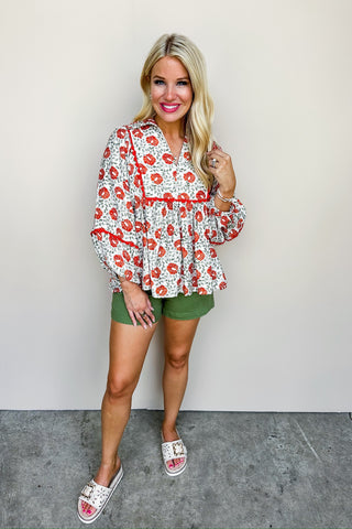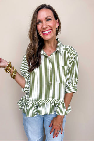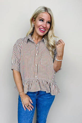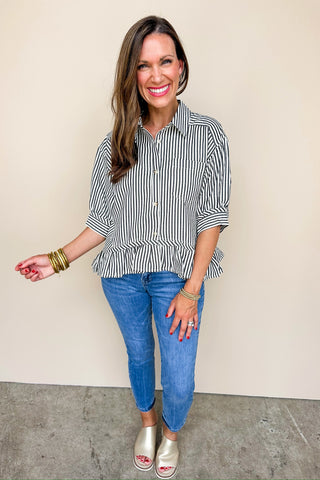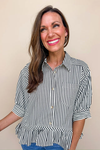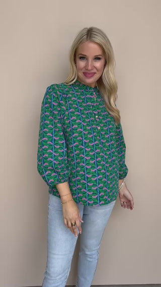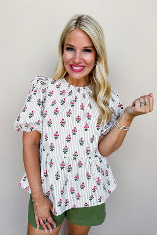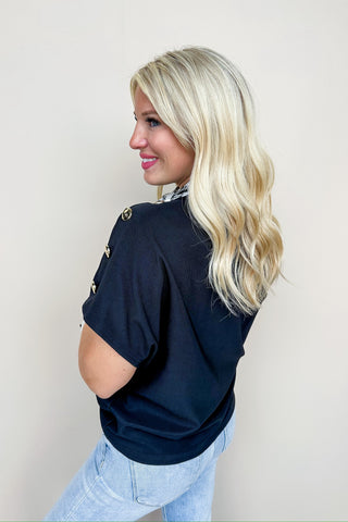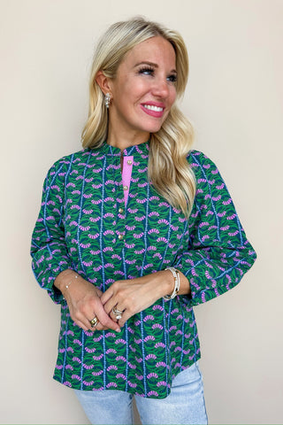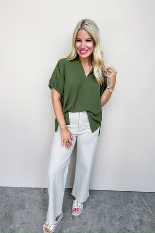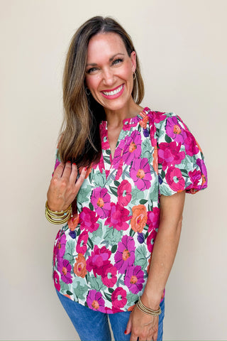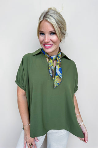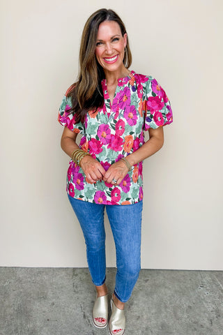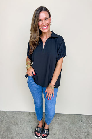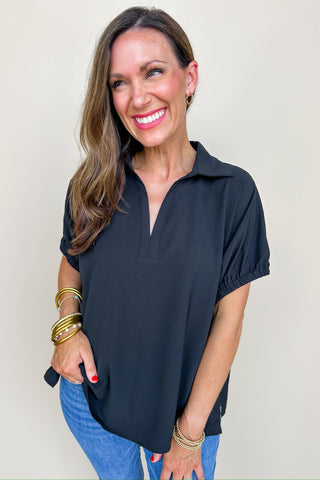 Hot Pink Deal - Puff Sleeve Polo Top in Blue