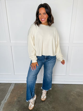 Hot Pink Deal - Waffle Weave Throw On & Go Top in Cream