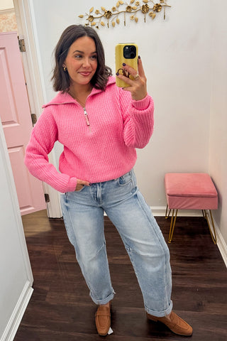 The Weekend Plush Half Zip Sweater in Bubblegum