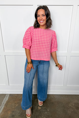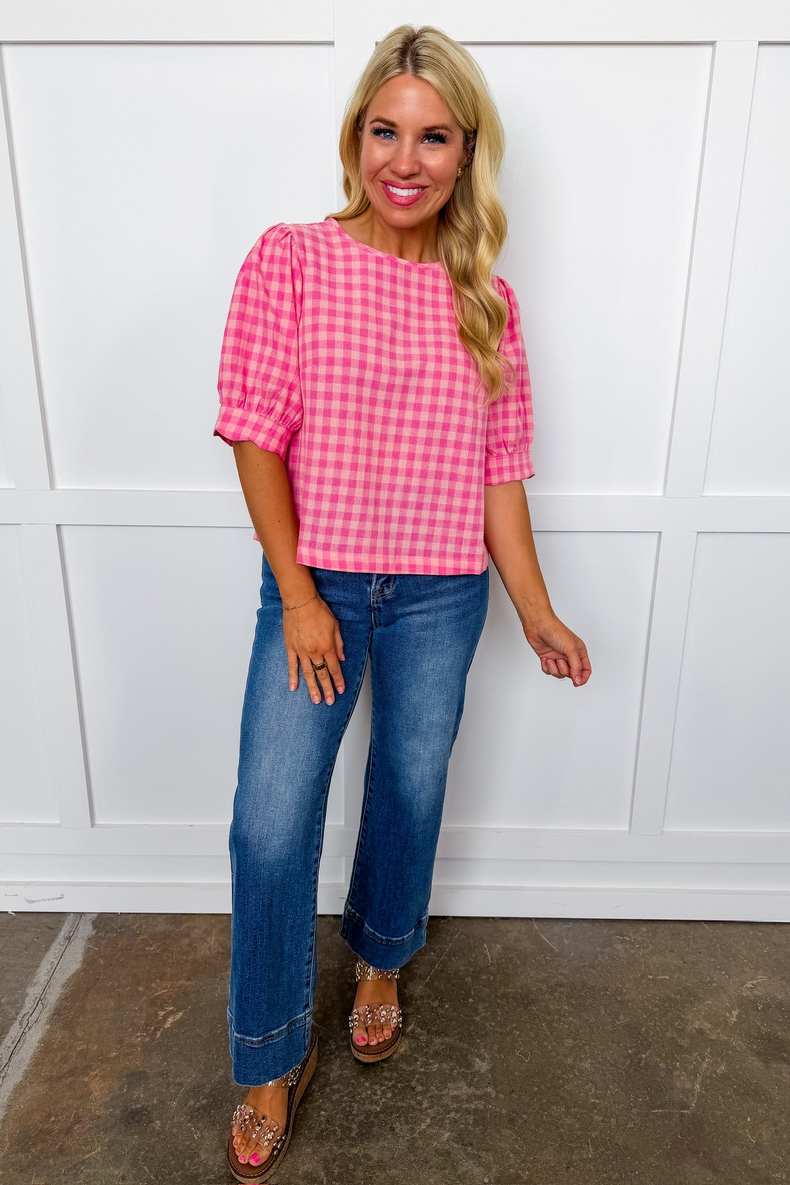 Princess of the Picnic Bubble Gum Pink Gingham Top