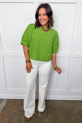 Fresh, feminine, and effortlessly chic, the Princess of the Picnic Bubble Gum Pink Gingham Top is a standout piece for your everyday wardrobe. Designed in a soft pink gingham print, this top features scalloped puff sleeves that add a charming, elevated touch while keeping the silhouette relaxed and easy to wear. Lightweight and versatile, it pairs perfectly with your favorite denim, white pants, or skirts for a look that feels polished yet playful.
