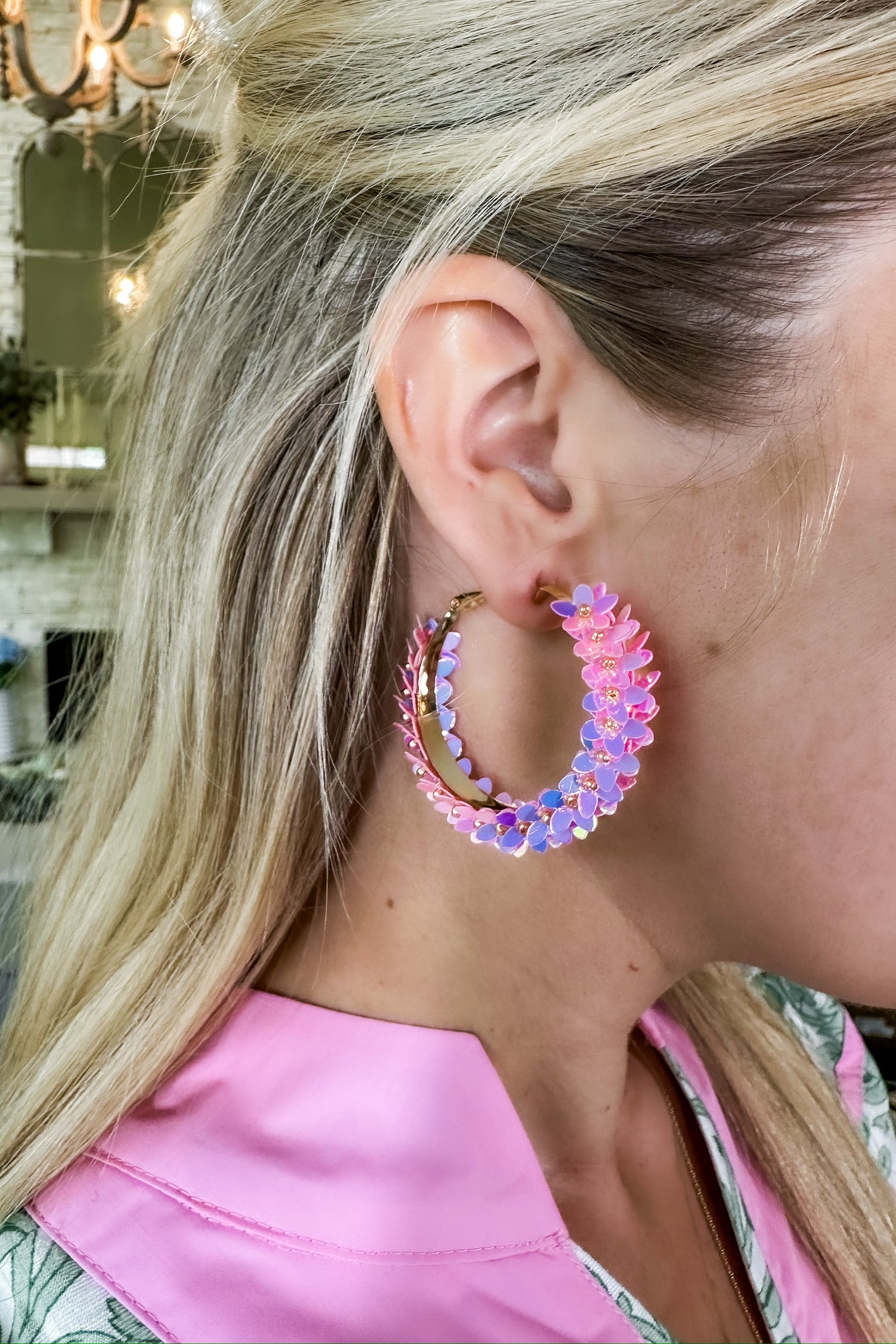 The Lily Pink Iridescent Flower Hoop Earrings by Taylor Shaye