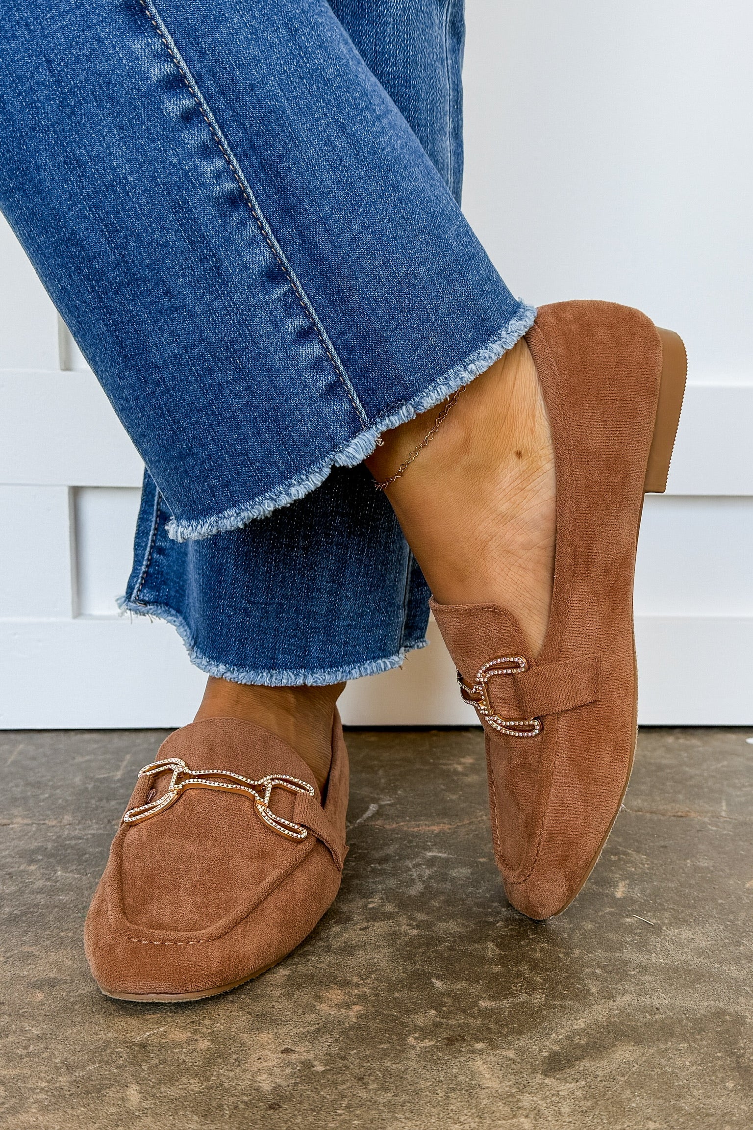 Elevate your shoe game with Won the Lottery Crystal Gold Metal Chain Suede Loafer in Camel. Featuring a luxurious suede material and a glimmering gold metal chain, these loafers add a touch of sophistication to any outfit. Step out in style and stand out from the crowd with this one-of-a-kind piece!