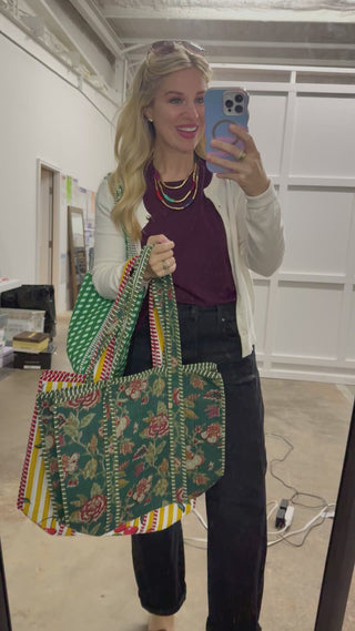 Hot Pink Deal - Gingham Print Quilted Reversible Tote Bag