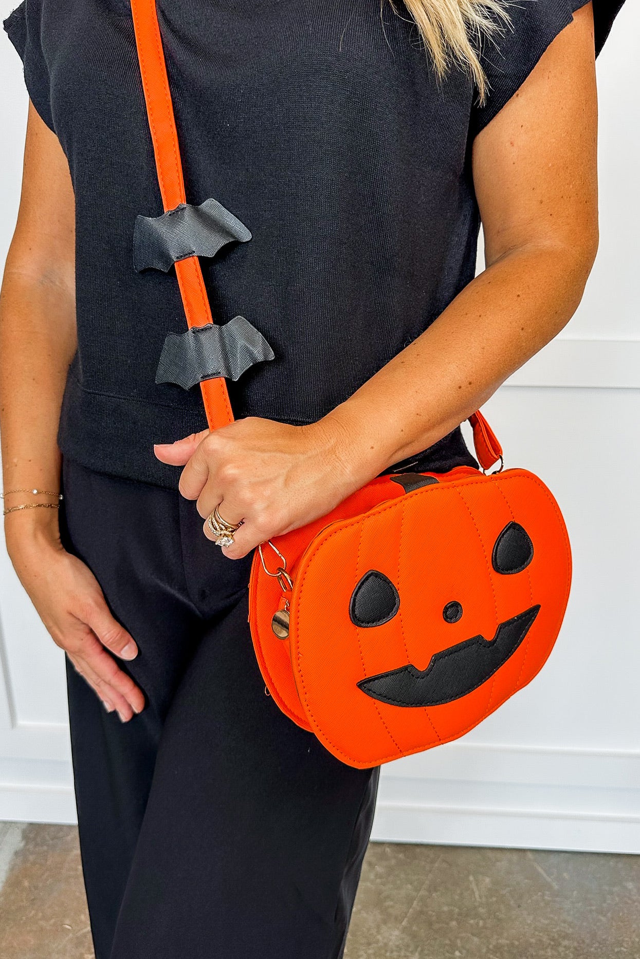 Get ready to turn heads this Halloween with this playful faux leather bag featuring a charming jack-o'-lantern design. Its adjustable strap ensures comfortable wear, while the secure zipper closure keeps your essentials safe as you celebrate the spooky season in style. Perfect for trick-or-treating or festive parties!