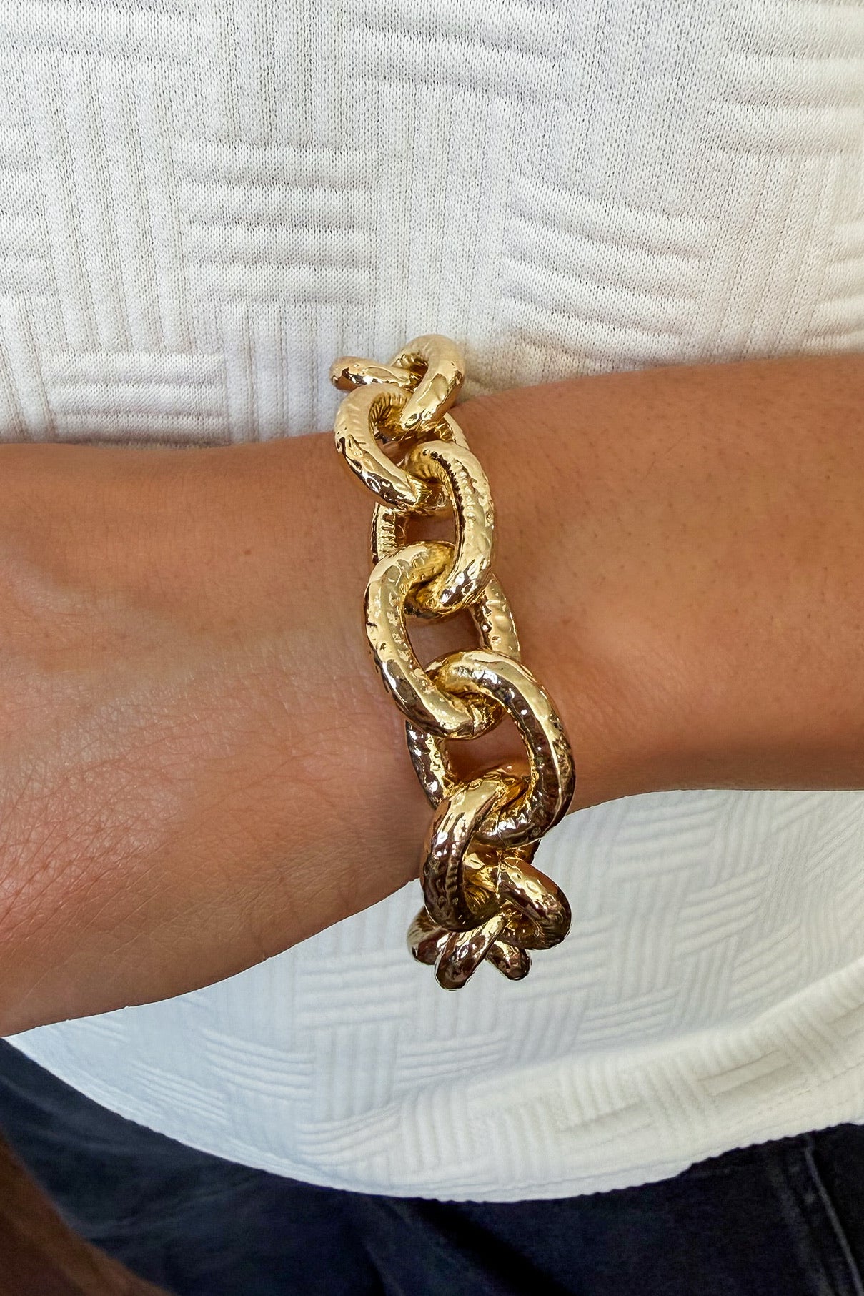 Add instant elegance to any outfit with our Golden Hammered Link Bracelet—a bold, timeless accessory that elevates your look with minimal effort. Featuring oversized textured links and a secure magnetic clasp, this bracelet is the perfect blend of classic glam and modern edge. Dress it up for date night or pair it with your everyday basics for an effortless luxe vibe.