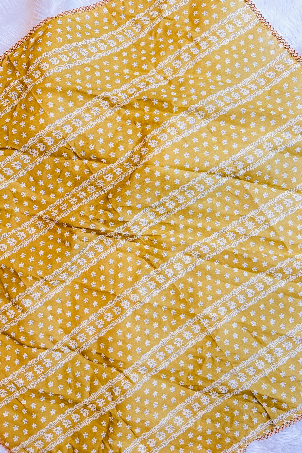 Add a splash of sunshine to your outfit with the Marigold & White Floral Neck Scarf. Its cheerful floral pattern brightens any look, while the soft fabric keeps you comfy all day. Perfect for tying around your neck, wrist, or even your bag, this scarf adds a playful touch wherever you go.