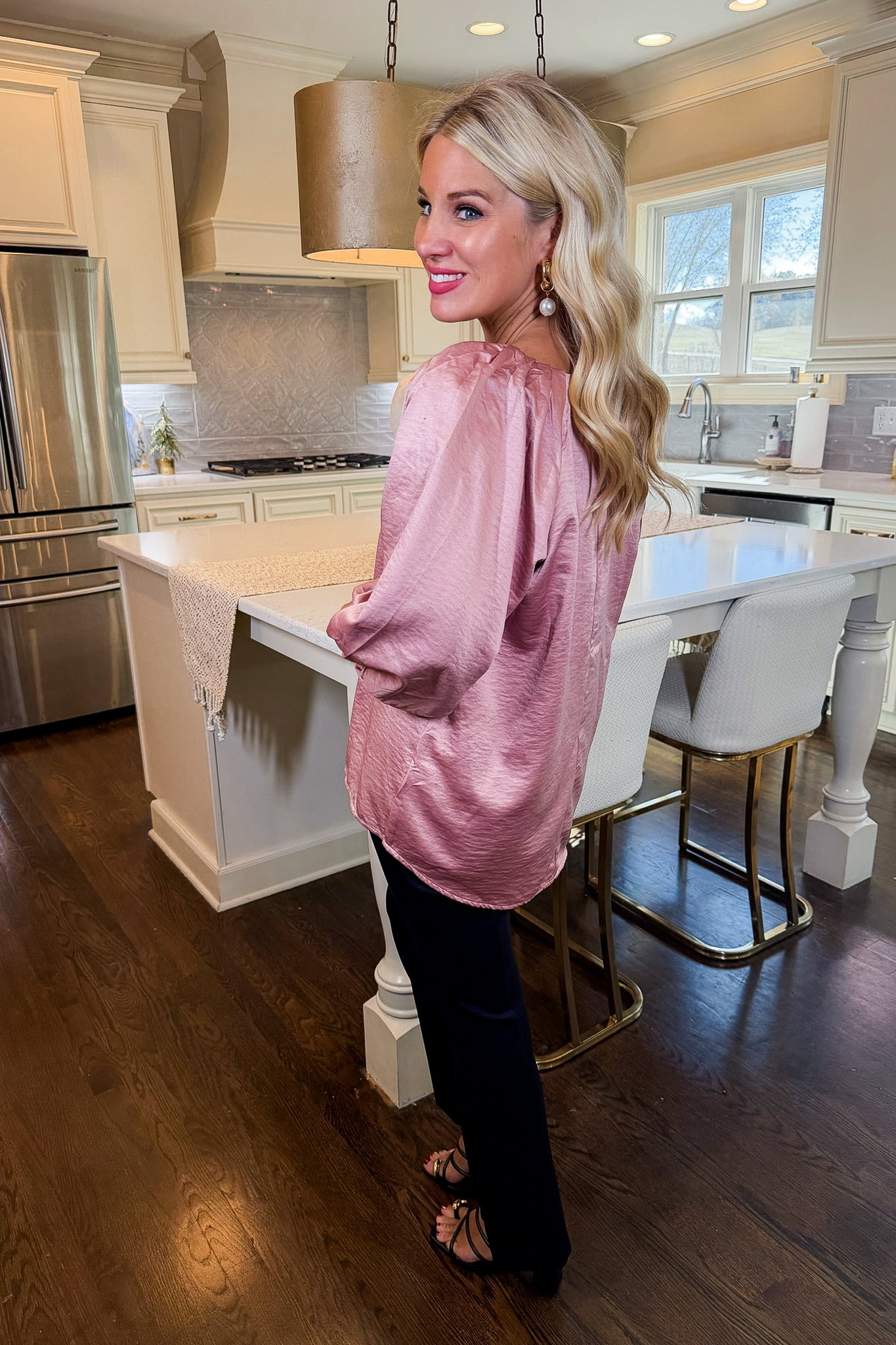 Elevate your everyday look with The Mauve Muse Top. This flowy navy blouse features soft balloon sleeves, a relaxed fit, and just a hint of shimmer that catches the light perfectly. Effortlessly chic, it’s ideal for both casual days and dressed-up evenings. Pair with white denim for a polished daytime look or faux leather pants for a night out.