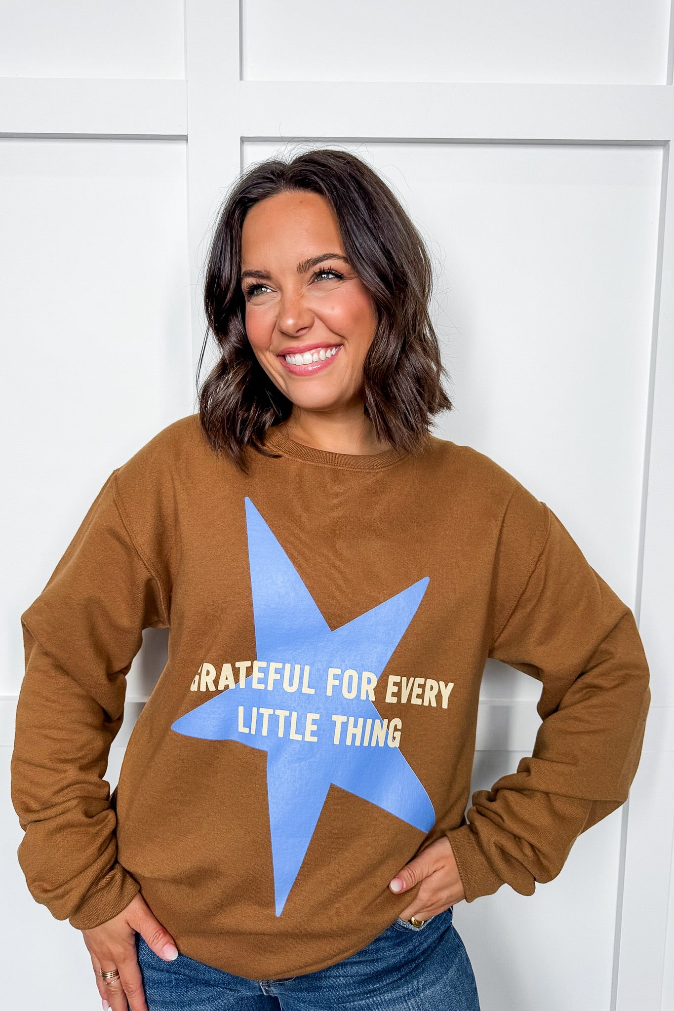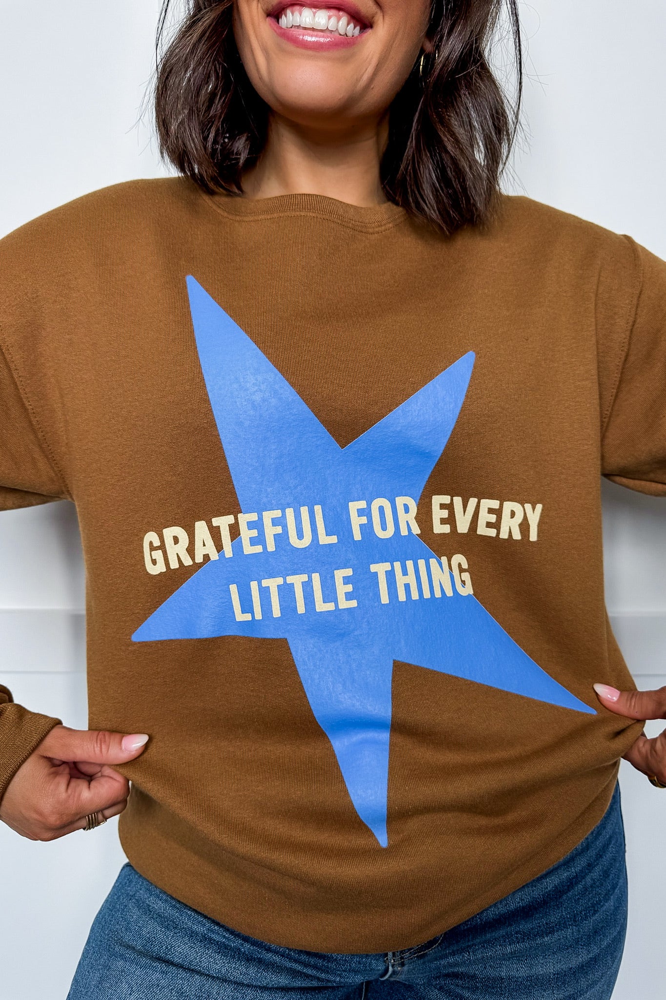 Cozy up in a reminder of the good things. This soft brown sweatshirt features a bold sky blue abstract star and a feel-good message. Its the perfect everyday pullover for staying comfy while keeping your mindset grounded and positive