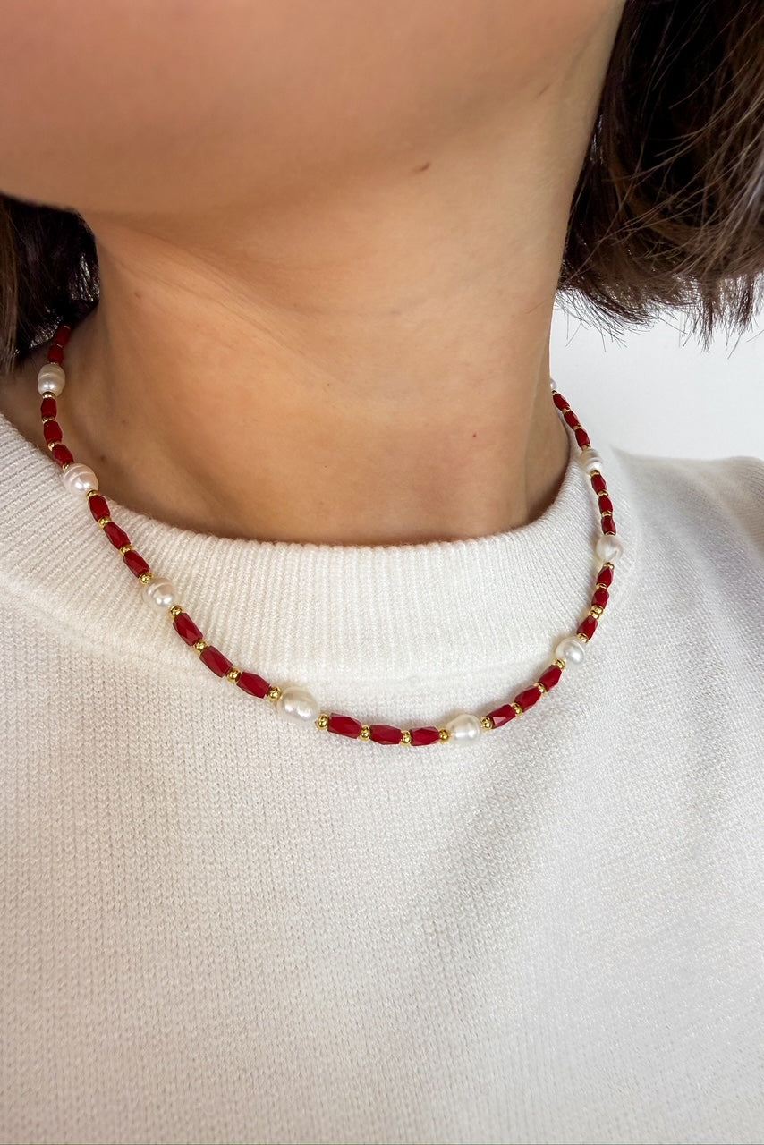 Chic Beaded Necklace In Red by Treasure Jewels