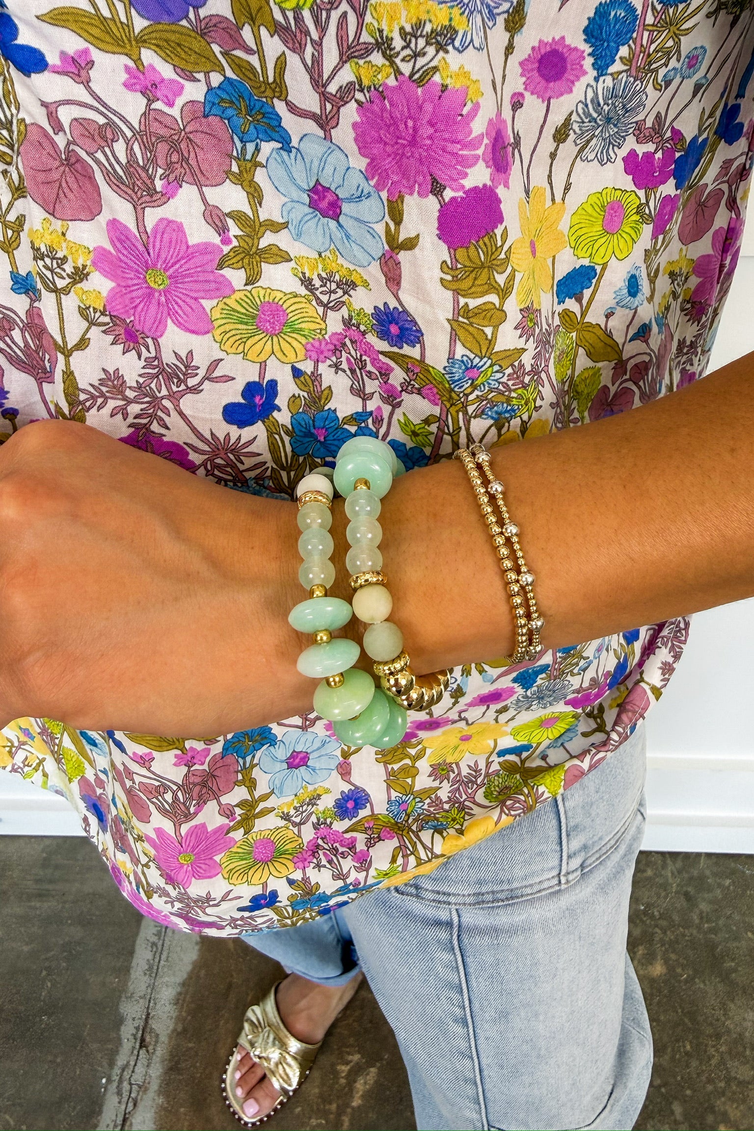 Effortless elegance meets everyday comfort with this mint beaded stretchy bracelet pair. Crafted with smooth, polished beads in a soothing mint hue, each bracelet stretches to fit most wrists securely without clasps or fasteners. Perfect for layering or wearing individually, this versatile duo transitions seamlessly from casual to dressed-up occasions. Lightweight and durable, these bracelets are ideal for stacking with other pieces or standing alone as a refreshing pop of color.
