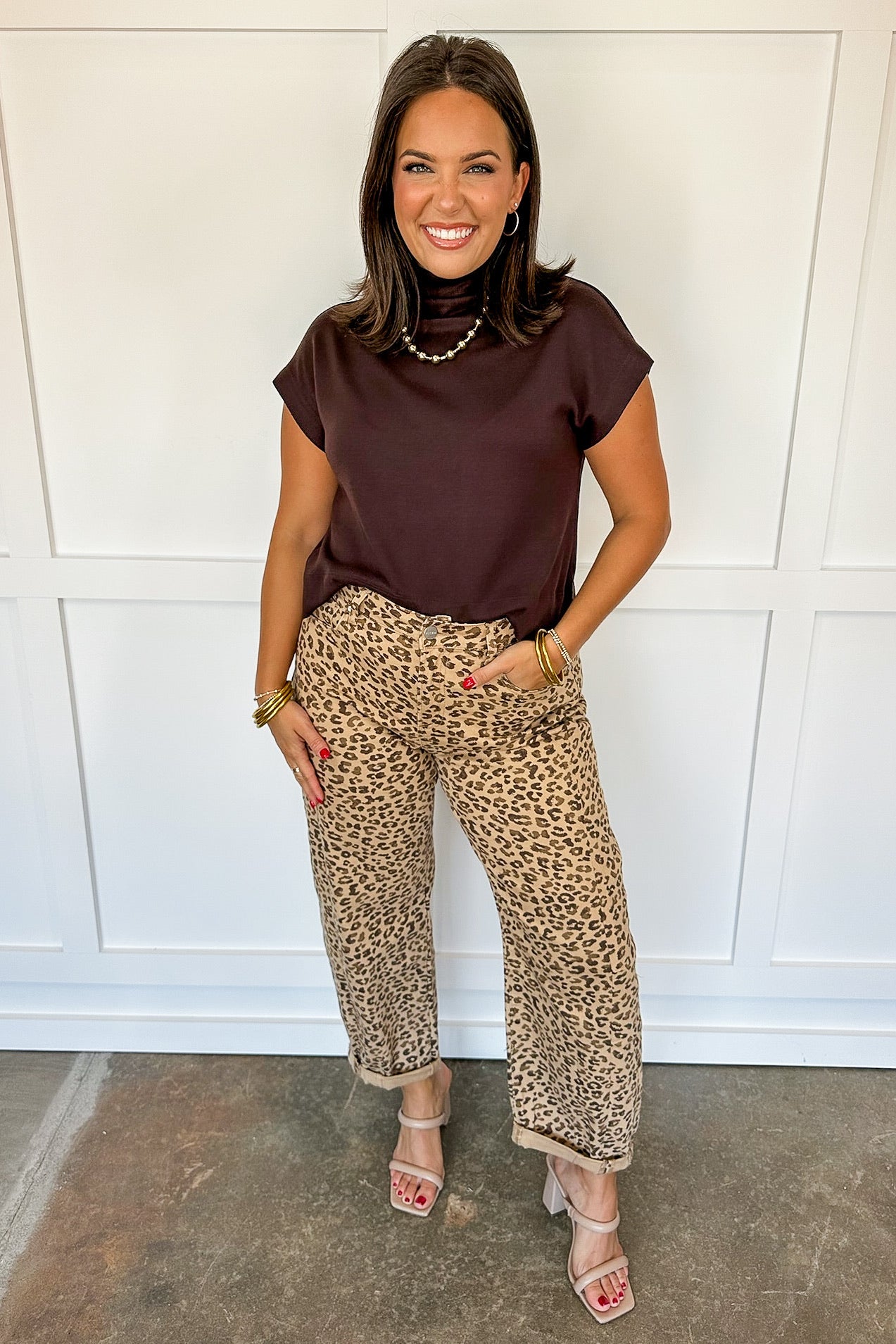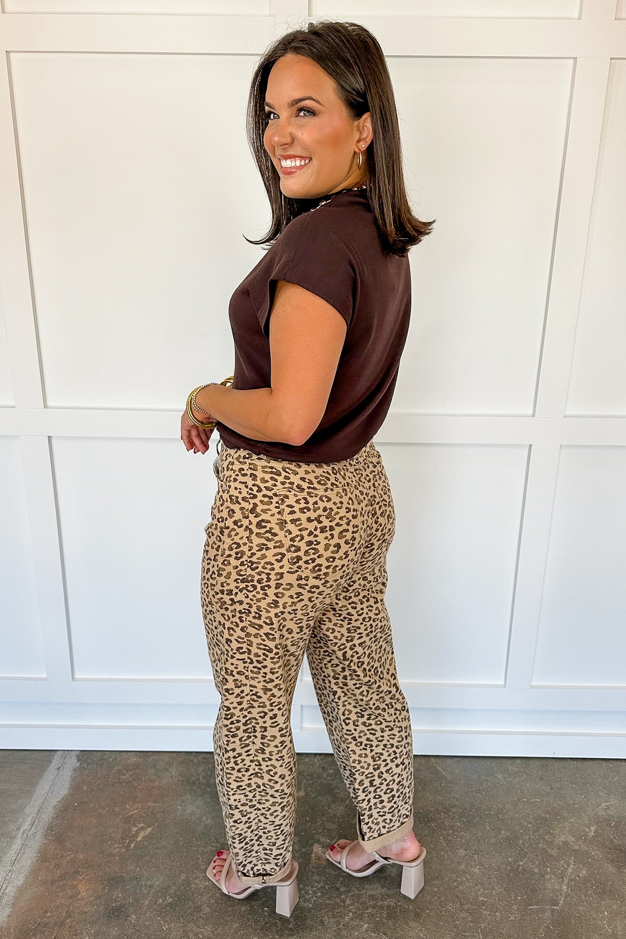 These Leopard Print Cropped High Waisted Barrel Jeans bring fun and flair to your wardrobe! Designed with inclusive sizing and a flattering high waist, they feature a button and zipper closure for a perfect fit. The trendy barrel leg and roll cuff add a playful twist, while front and back pockets keep essentials close. Perfect for mixing and matching with your favorite basics, these jeans make a bold statement with comfort and style.