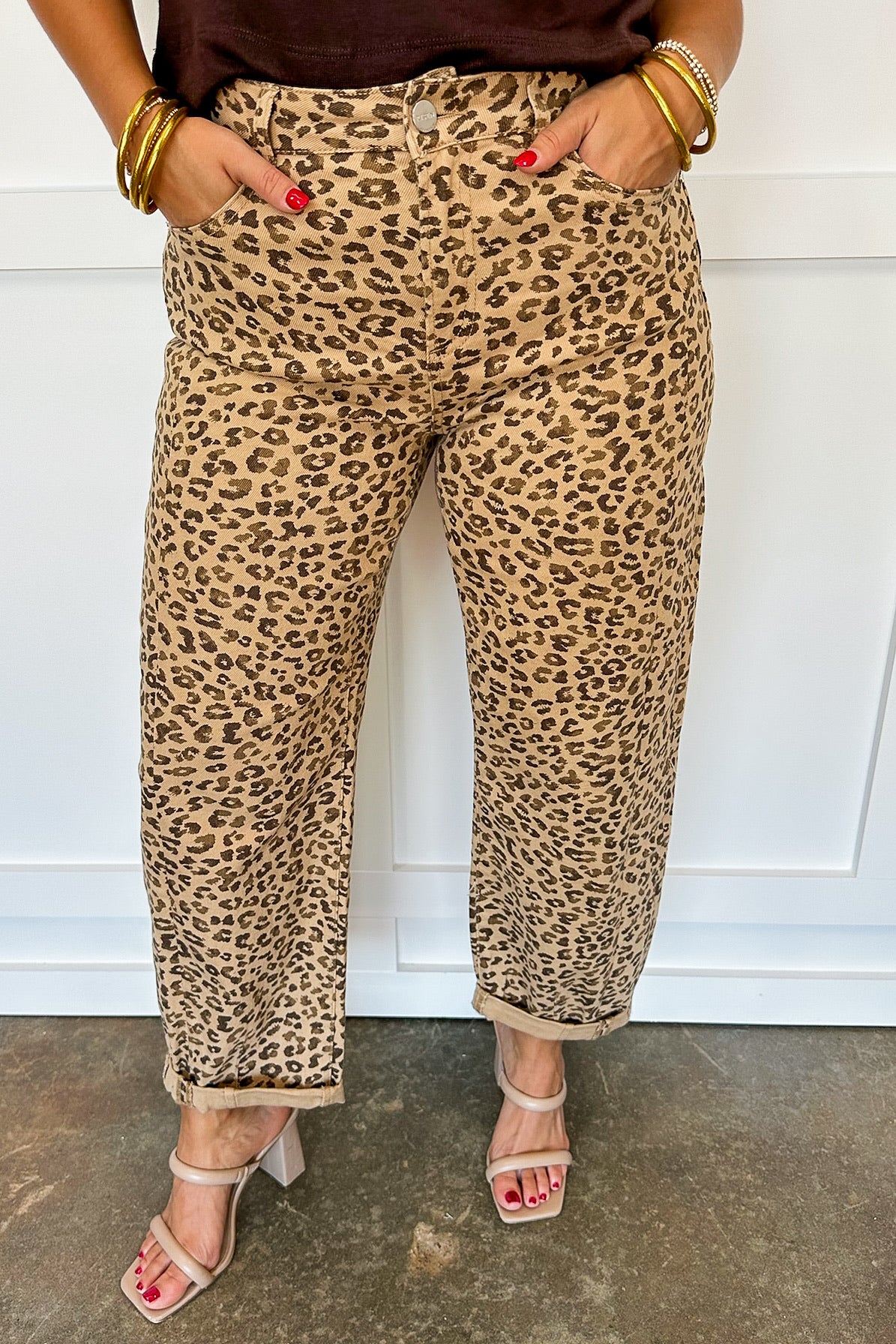 Best Selling Leopard Print Cropped High Waisted Barrel Jean
