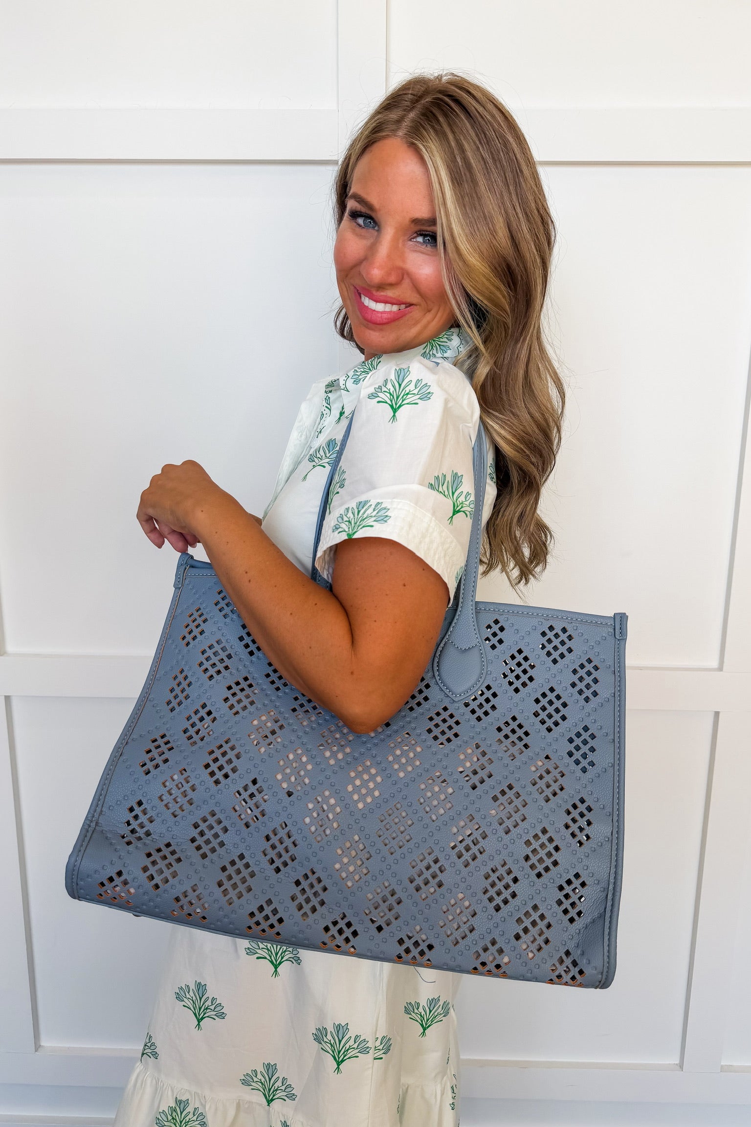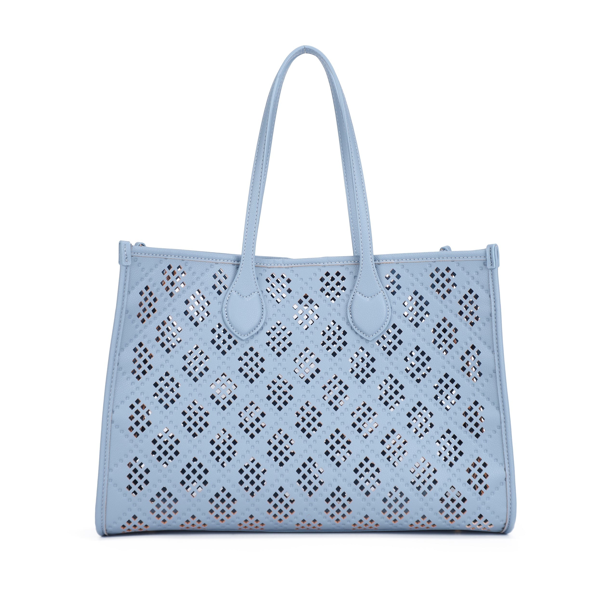 Your new everyday essential with a feminine twist -- The Savannah Eyelet Tote Set features a spacious perforated tote paired with a matching zip pouch to keep everything organized in style. Lightweight yet roomy, it’s perfect for work, travel, or beach days—basically wherever life takes you.